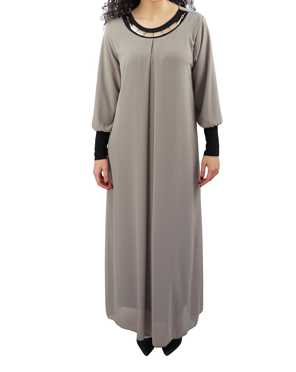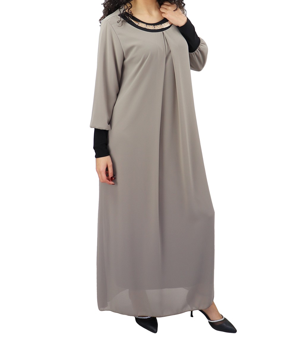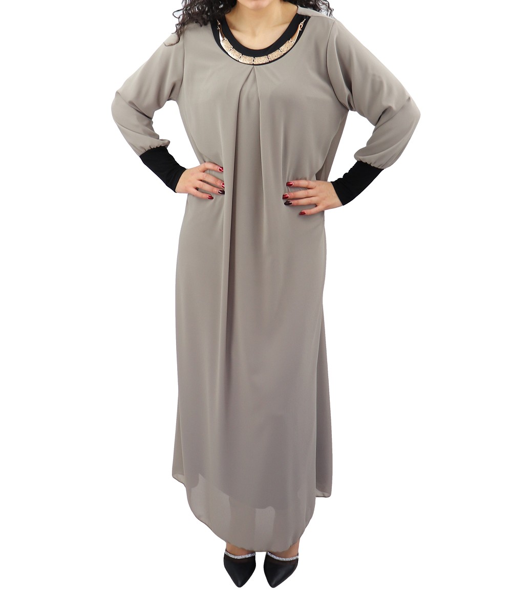 Robe longue fluide avec un joli collier - Couleur Taupe Vetement & Accessoire