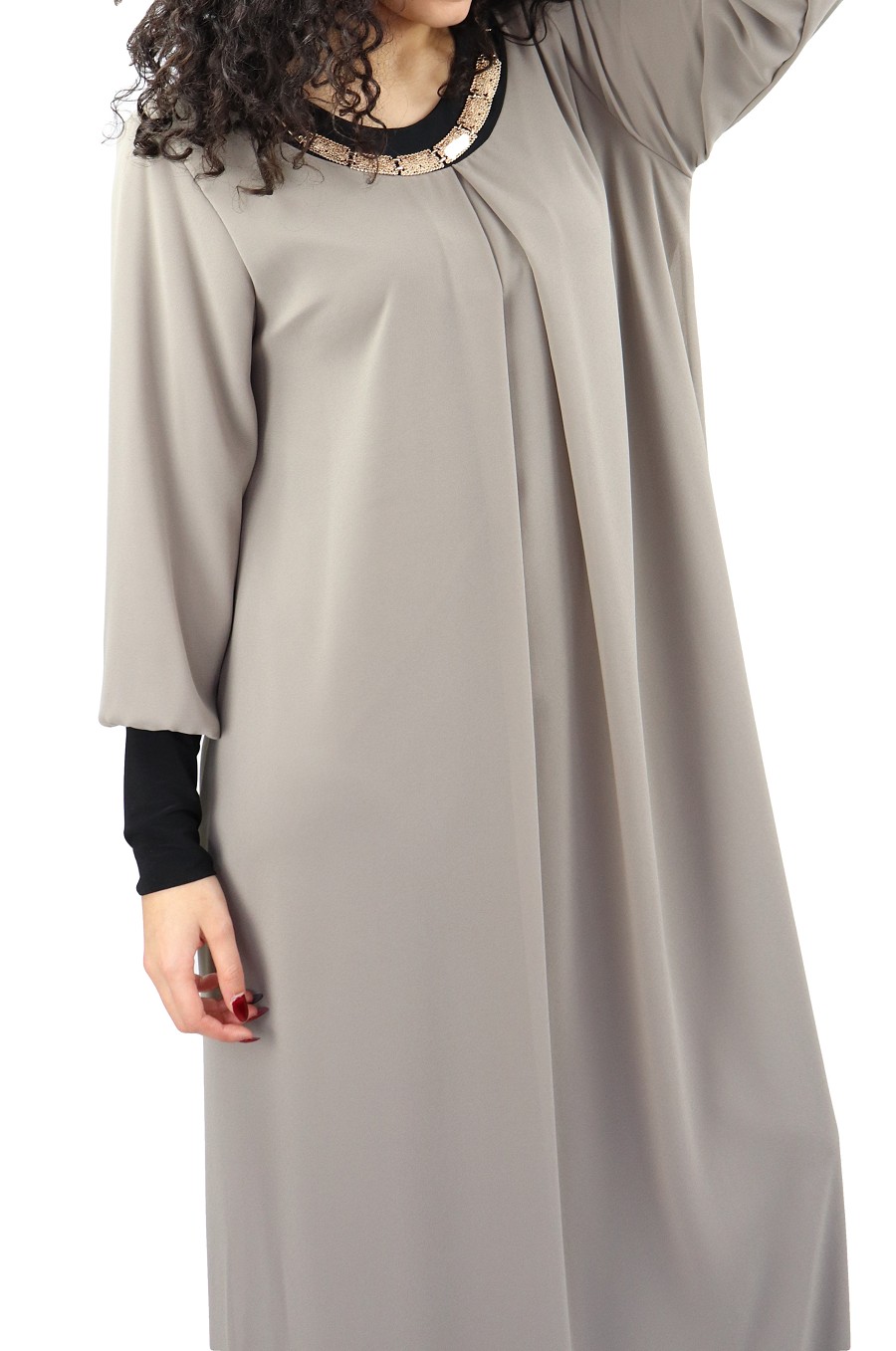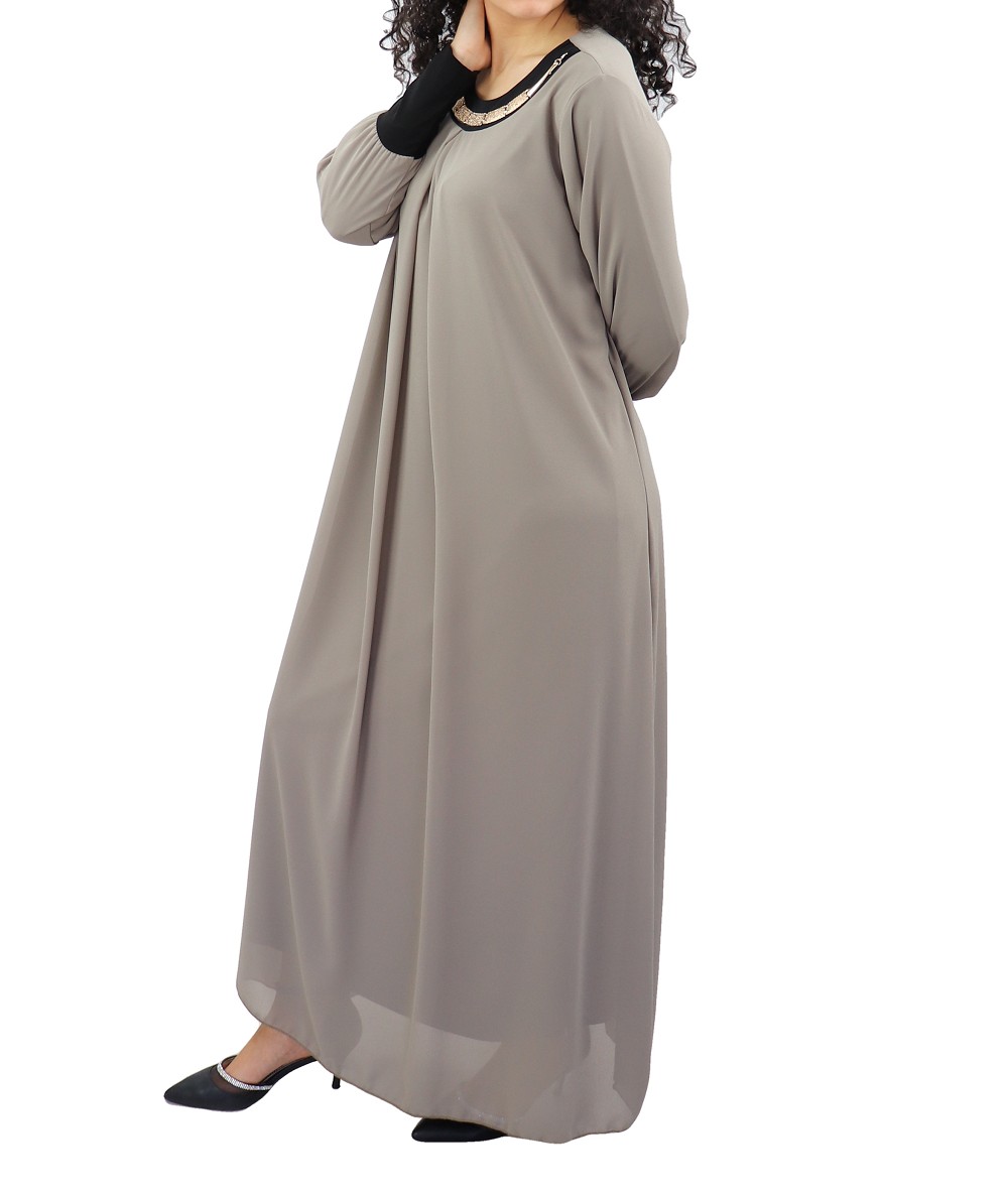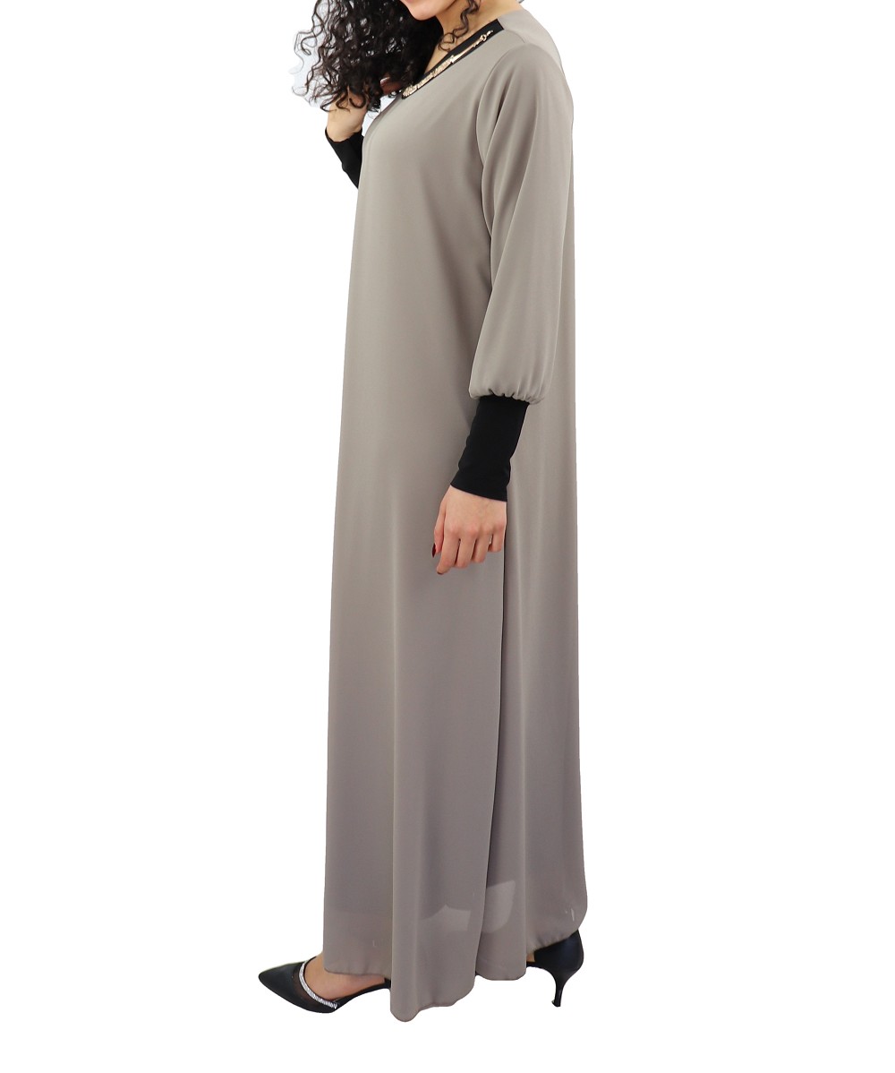 Robe longue fluide avec un joli collier - Couleur Taupe