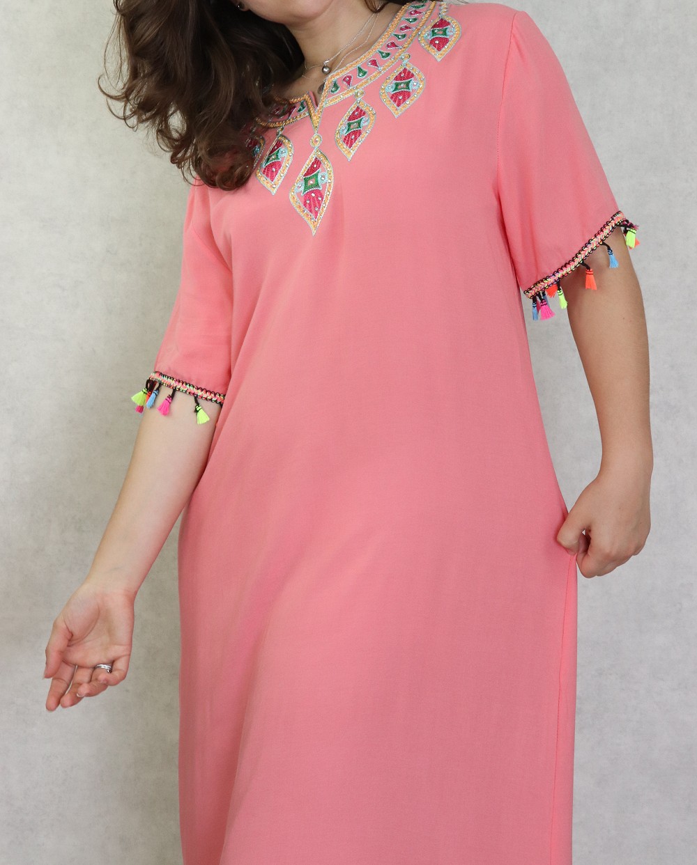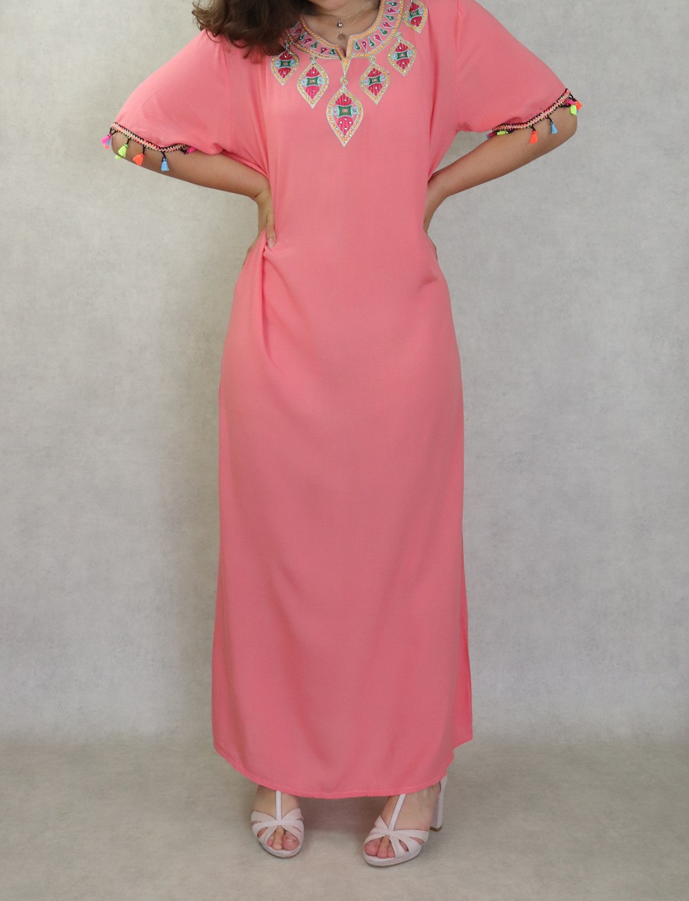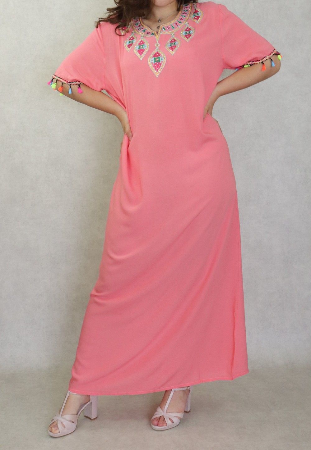 Robe orientale brodée manches longues pour femme - Couleur Corail - REF. 36146 (29.90 €)