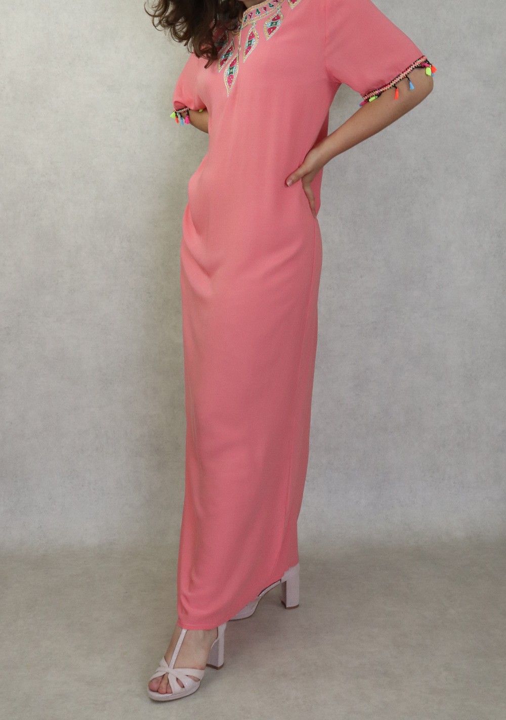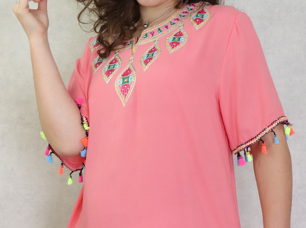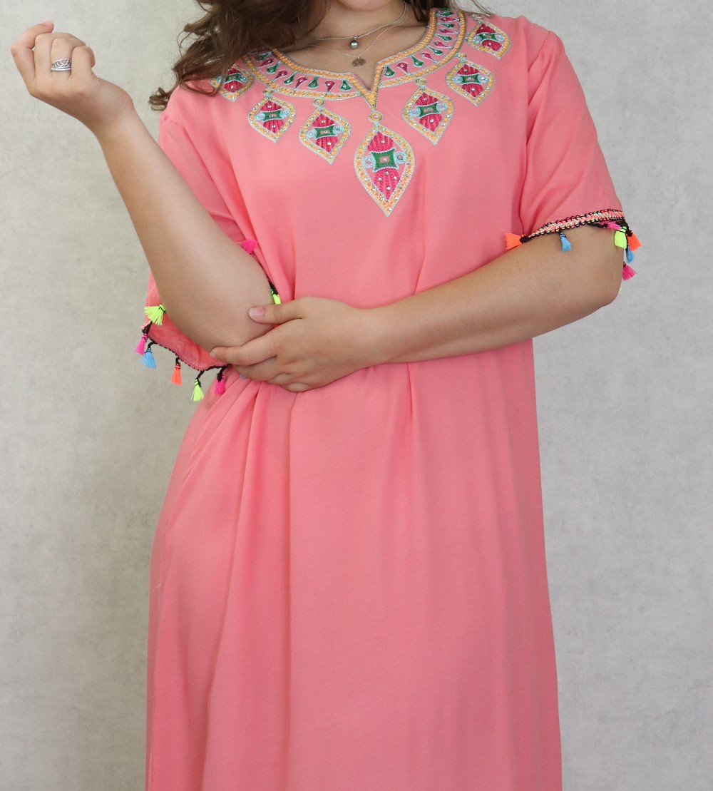 Robe orientale brodée manches longues pour femme - Couleur Corail - REF. 36146 (29.90 €)