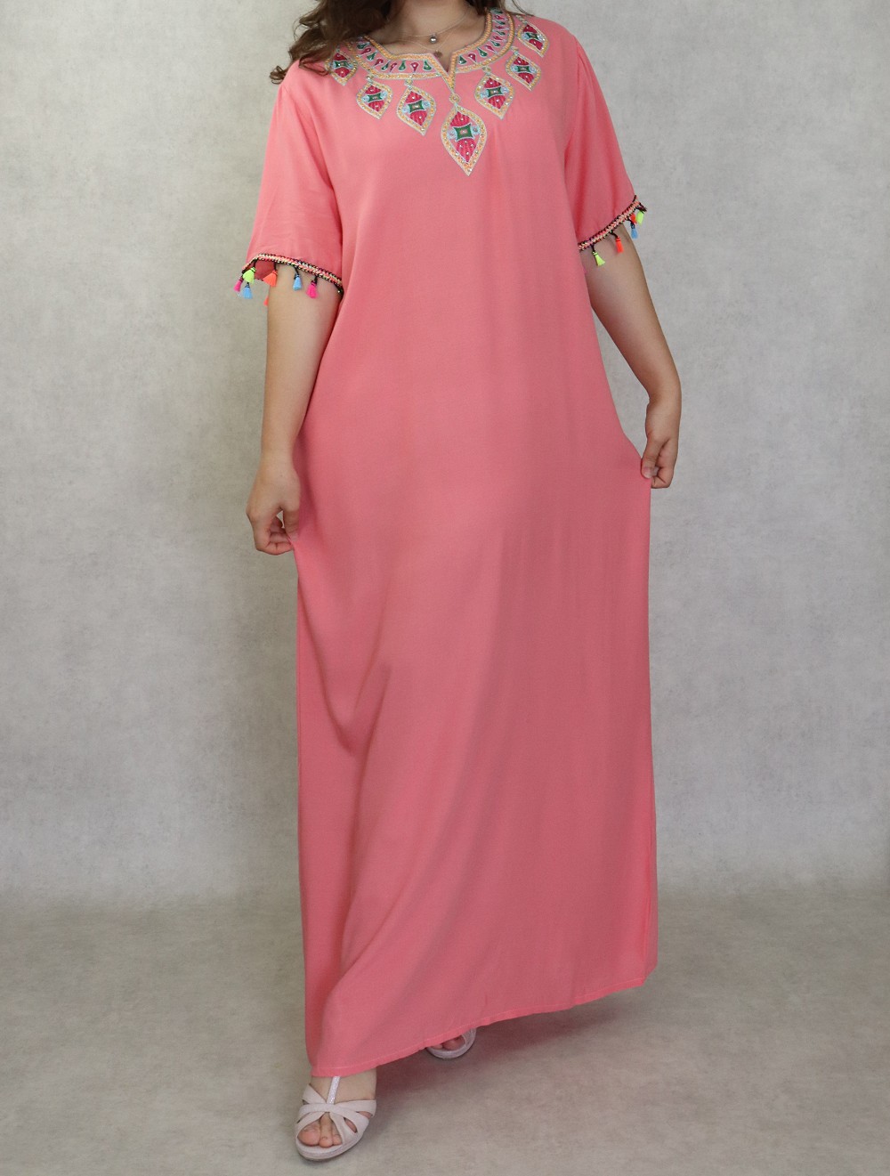 Robe longue fluide et confortable avec broderies et strass pour femme - Couleur Saumon Vetement & Accessoire