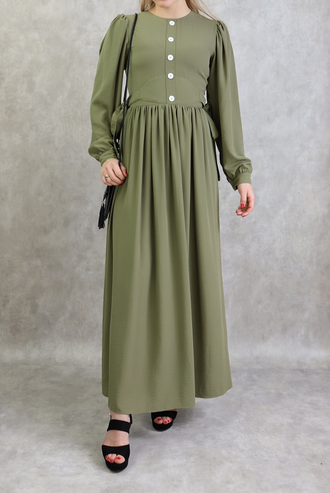 Robe longue raffinée de couleur vert olive - REF. 31199 (39.00 €)