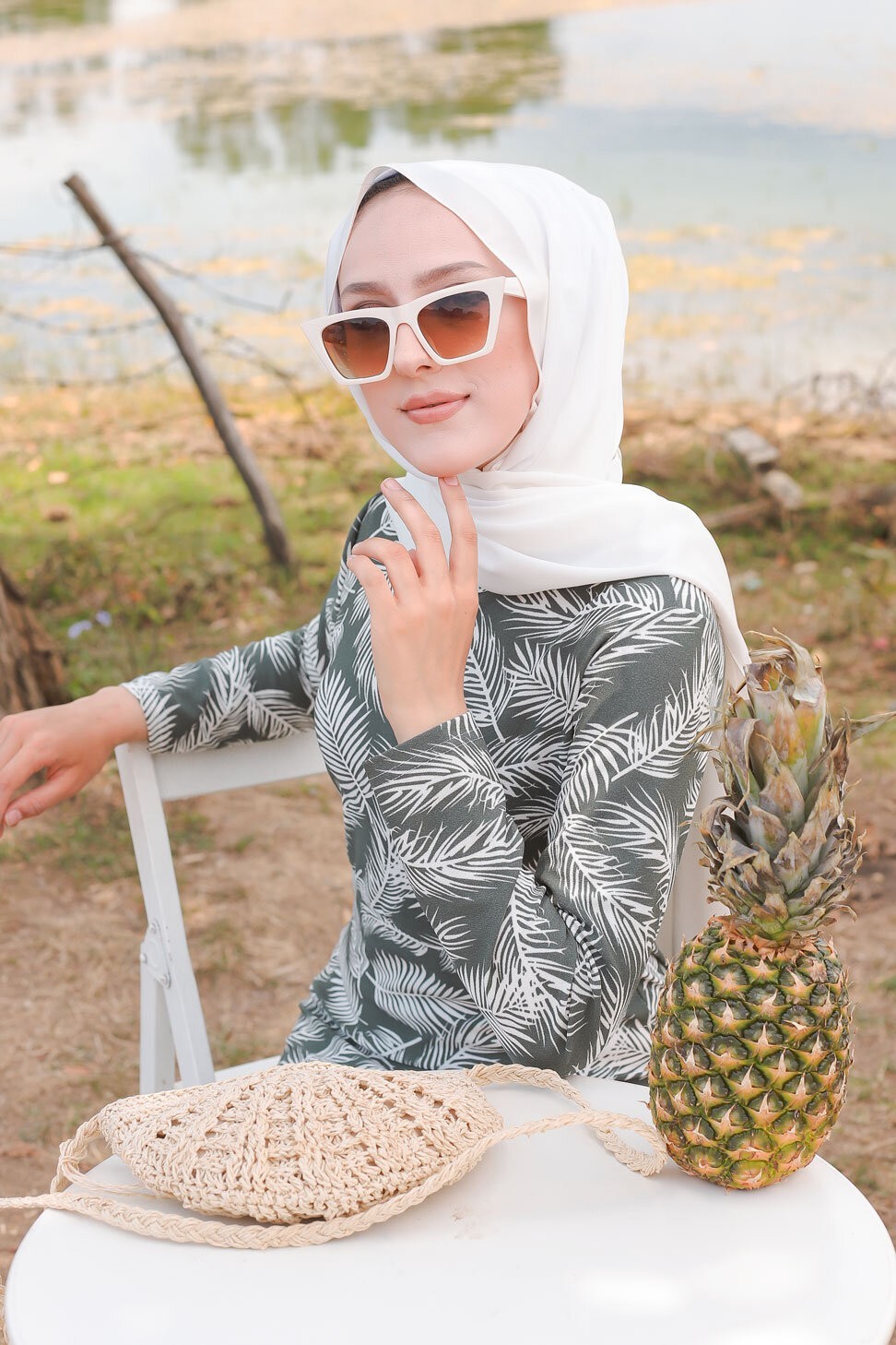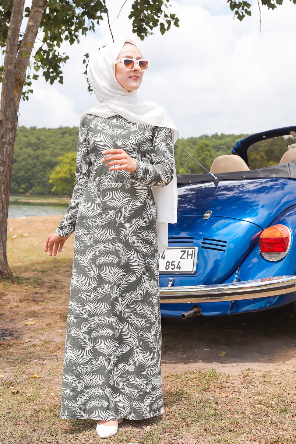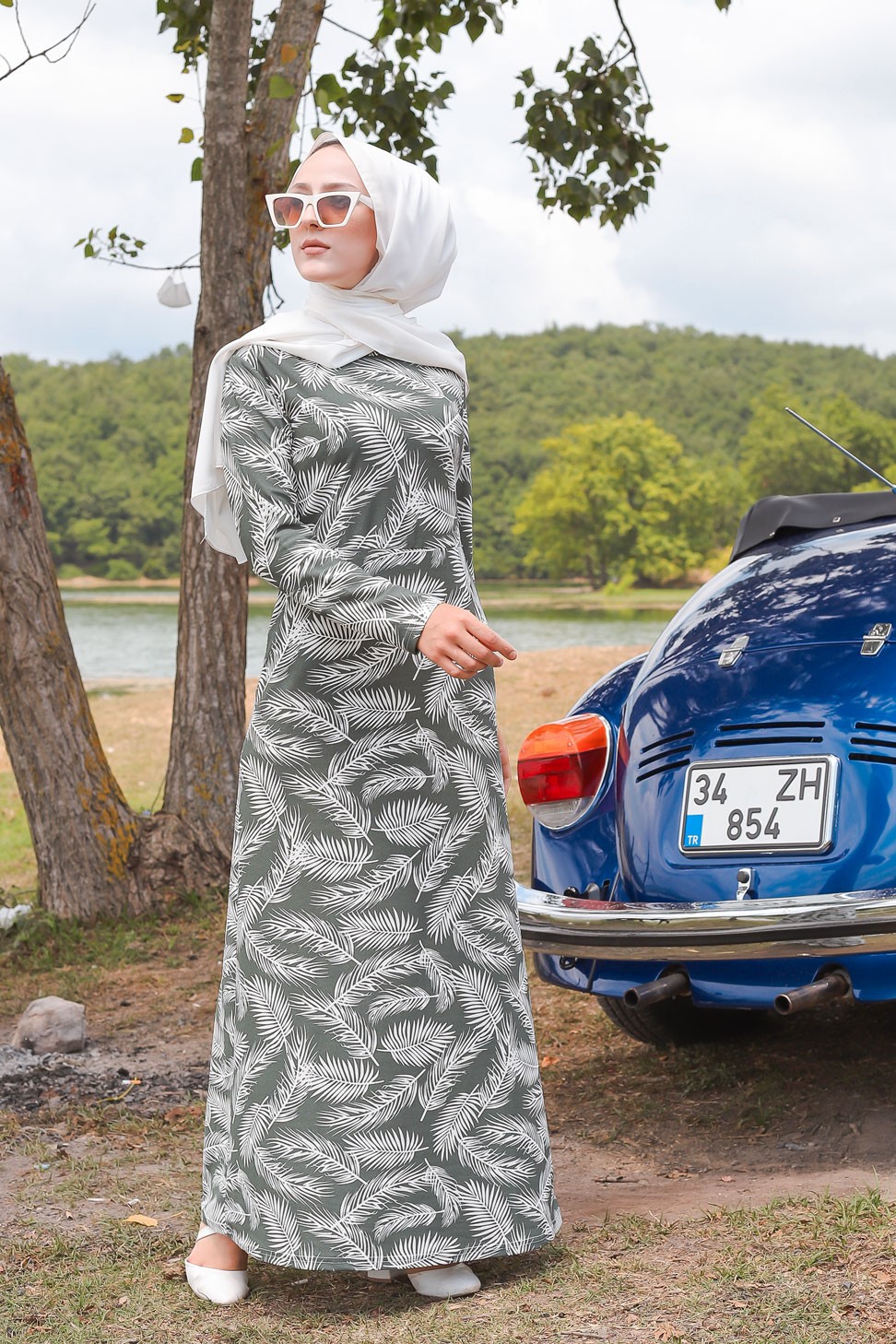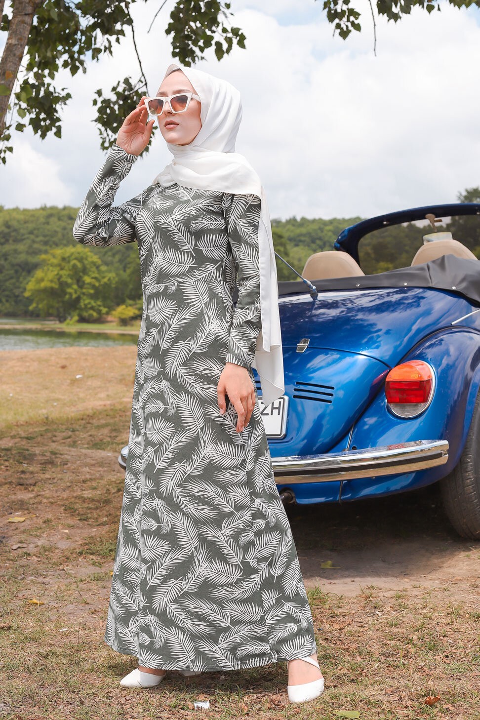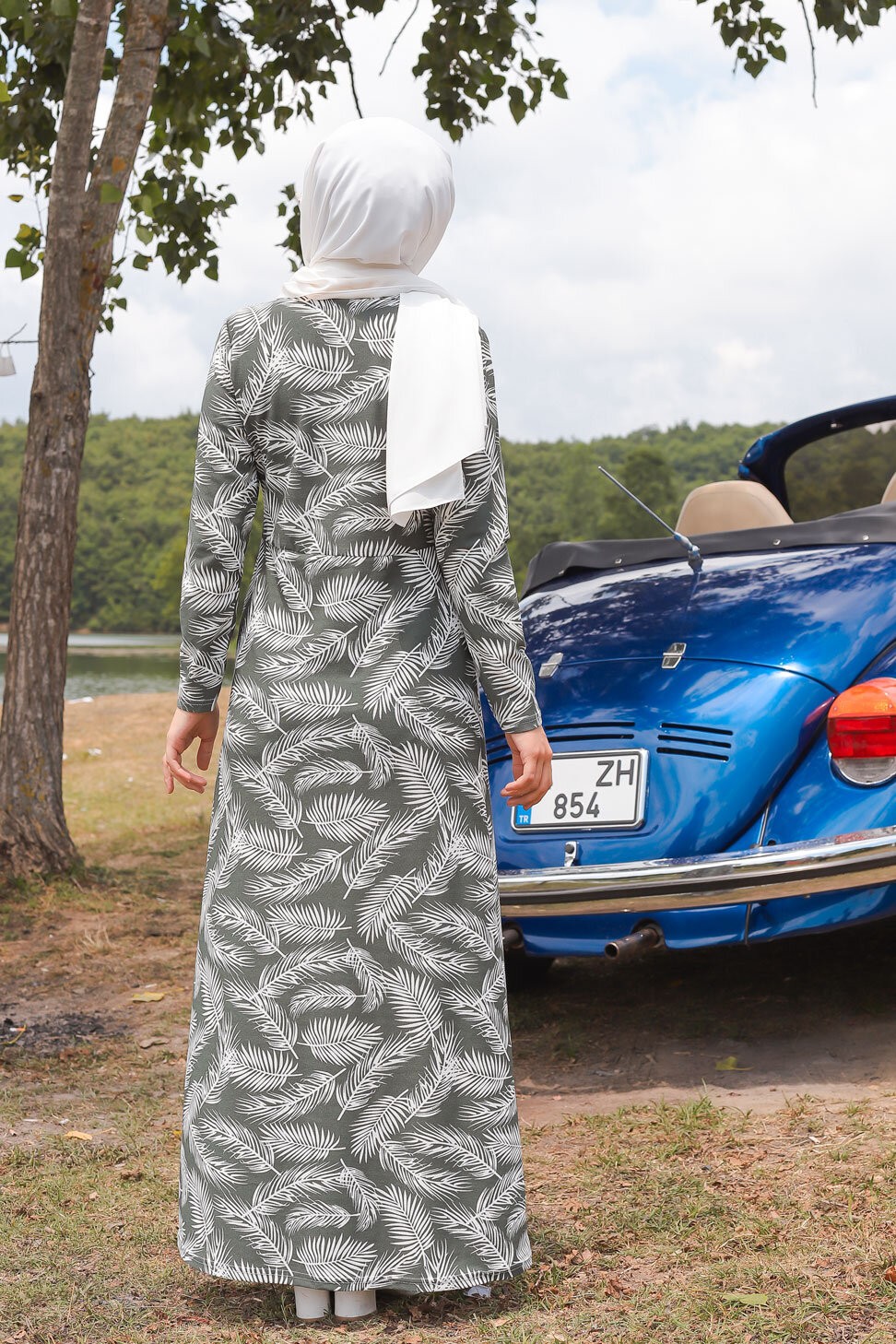 Robe longue imprimee motifs feuilles (Mode musulmane) - Couleur kaki