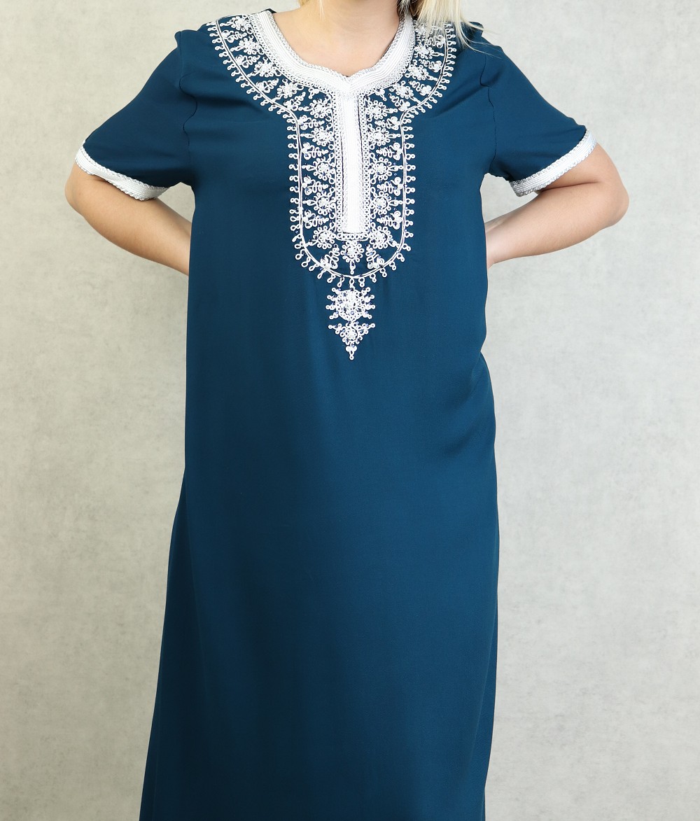 Robe Orientale élégante manches courtes tissu doux avec broderies pour femme - Couleur Bleu roi - REF. 37178 (24.90 €)