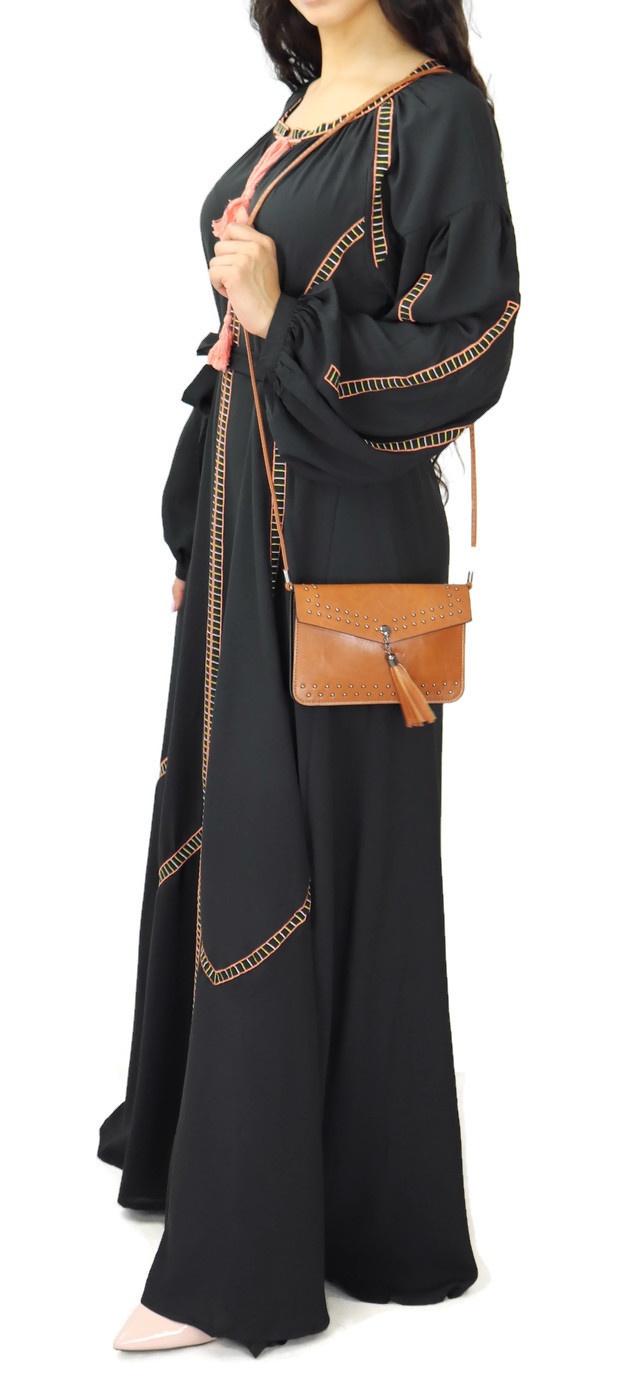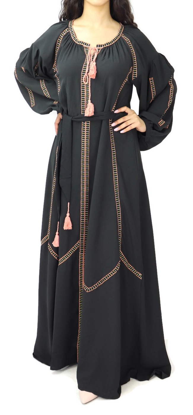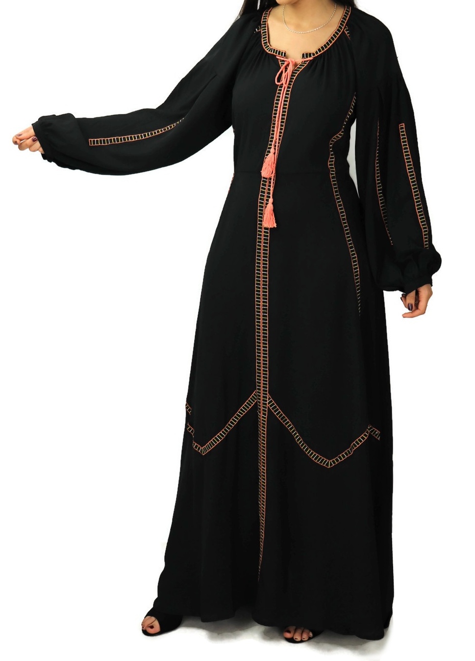 Robe longue habillée et chic avec perles (Vêtement mastour classe pour femme voilée) - Couleur noir - REF. 35989 (36.00 €)
