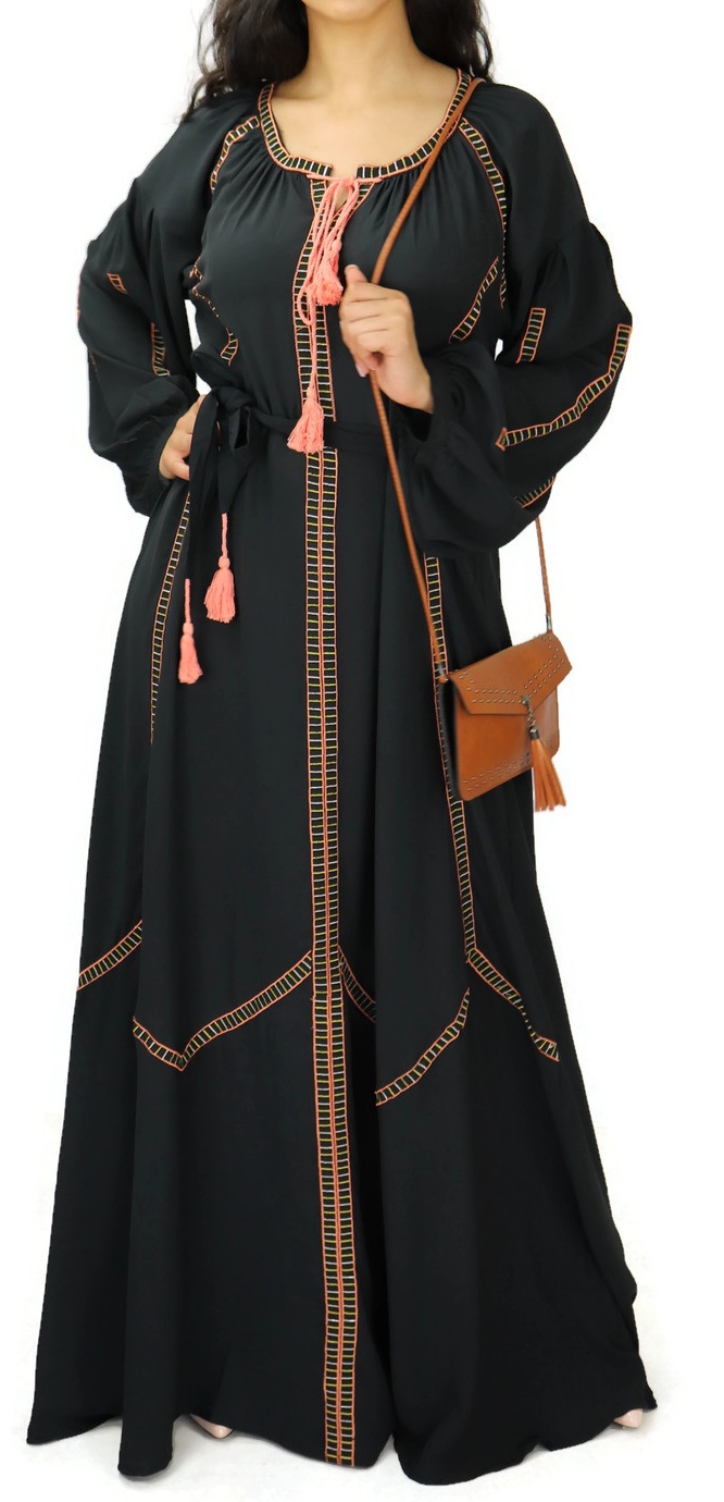 Robe longue à volants (Abaya chic Mode musulmane) - Couleur noir - REF. 33184 (24.90 €)