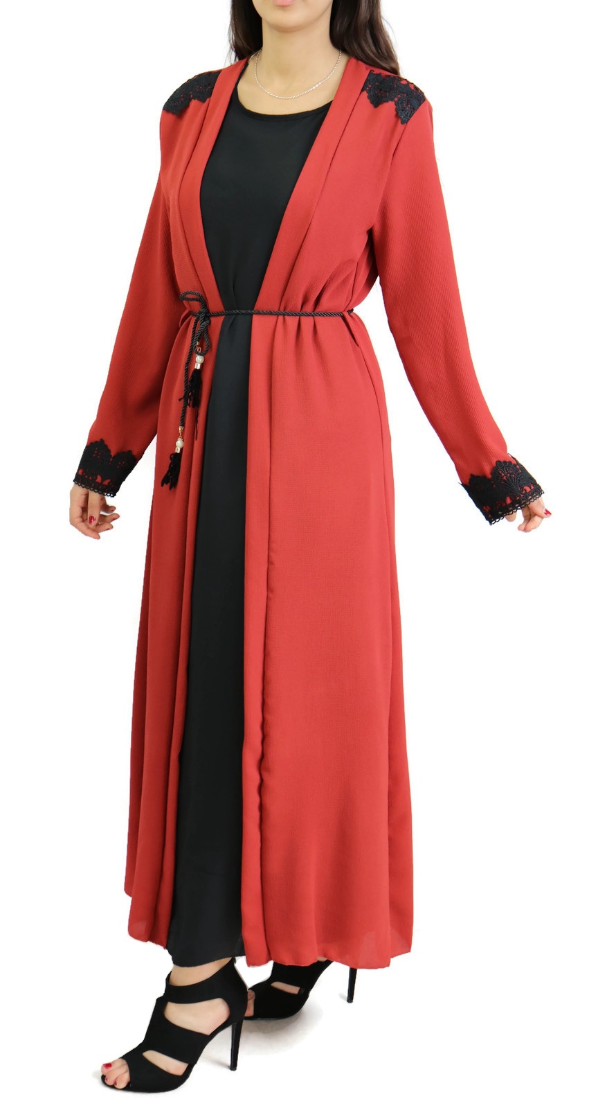 Robe longue avec gilet intégré (Abaya et Kimono cousus ensemble) - Couleur noir - REF. 34706 (29.90 €)