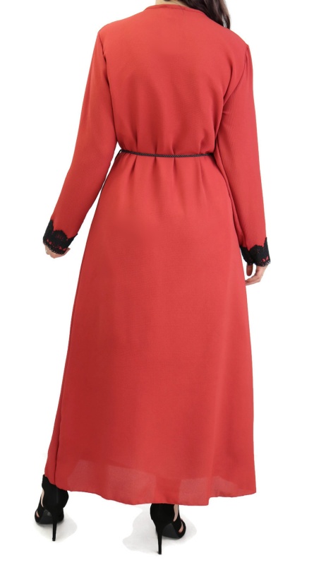 Robe longue cintrée décoration boutons pour femme - Couleur rouille (Vêtement musulman turque) - REF. 30388 (25.00 €)