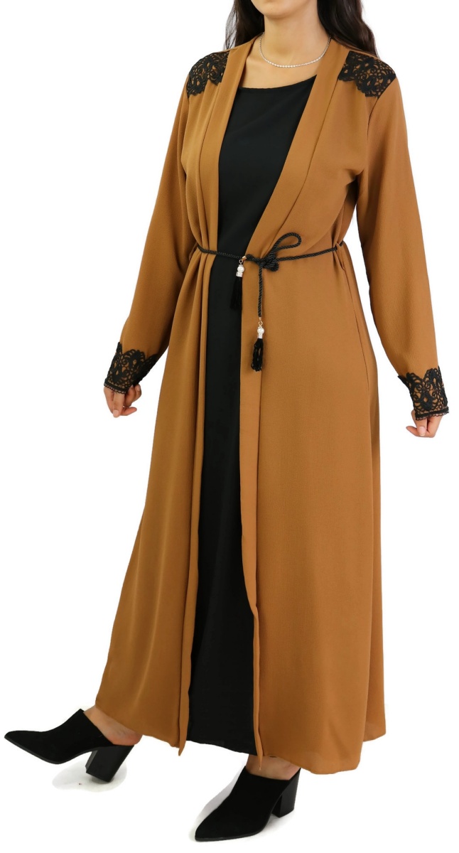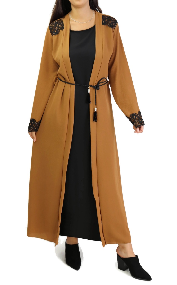Robe longue noire avec kimono intégré couleur camel Vetement & Accessoire
