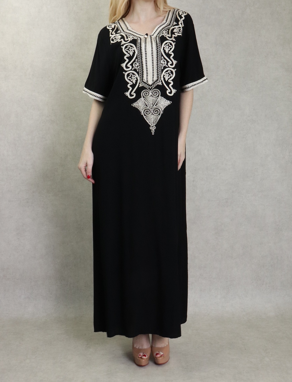 Robe orientale longue brodée manches courtes et décontractée pour femme - Couleur noir - REF. 37661 (19.90 €)