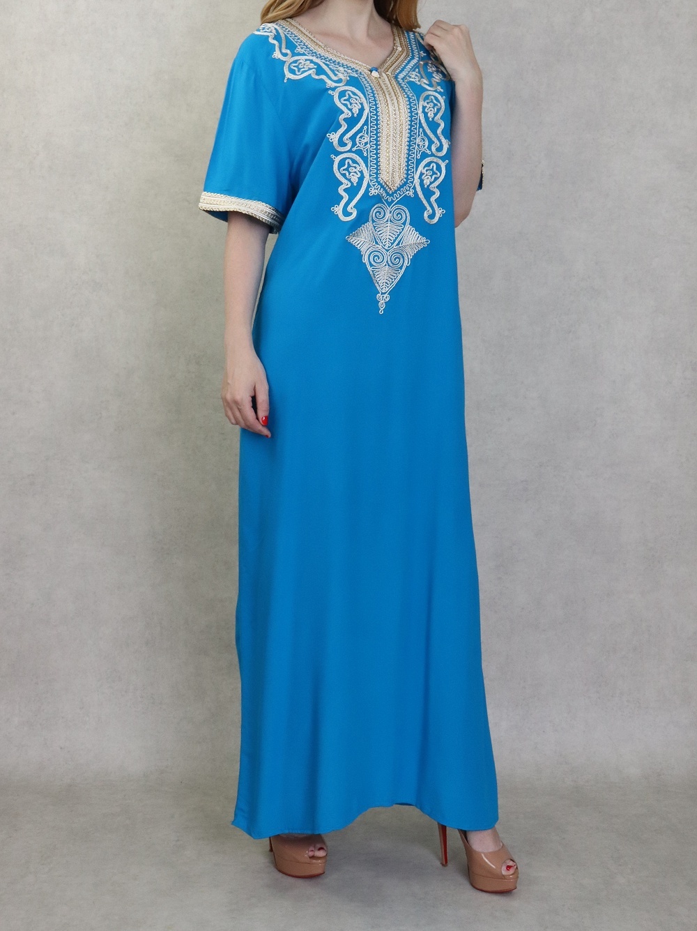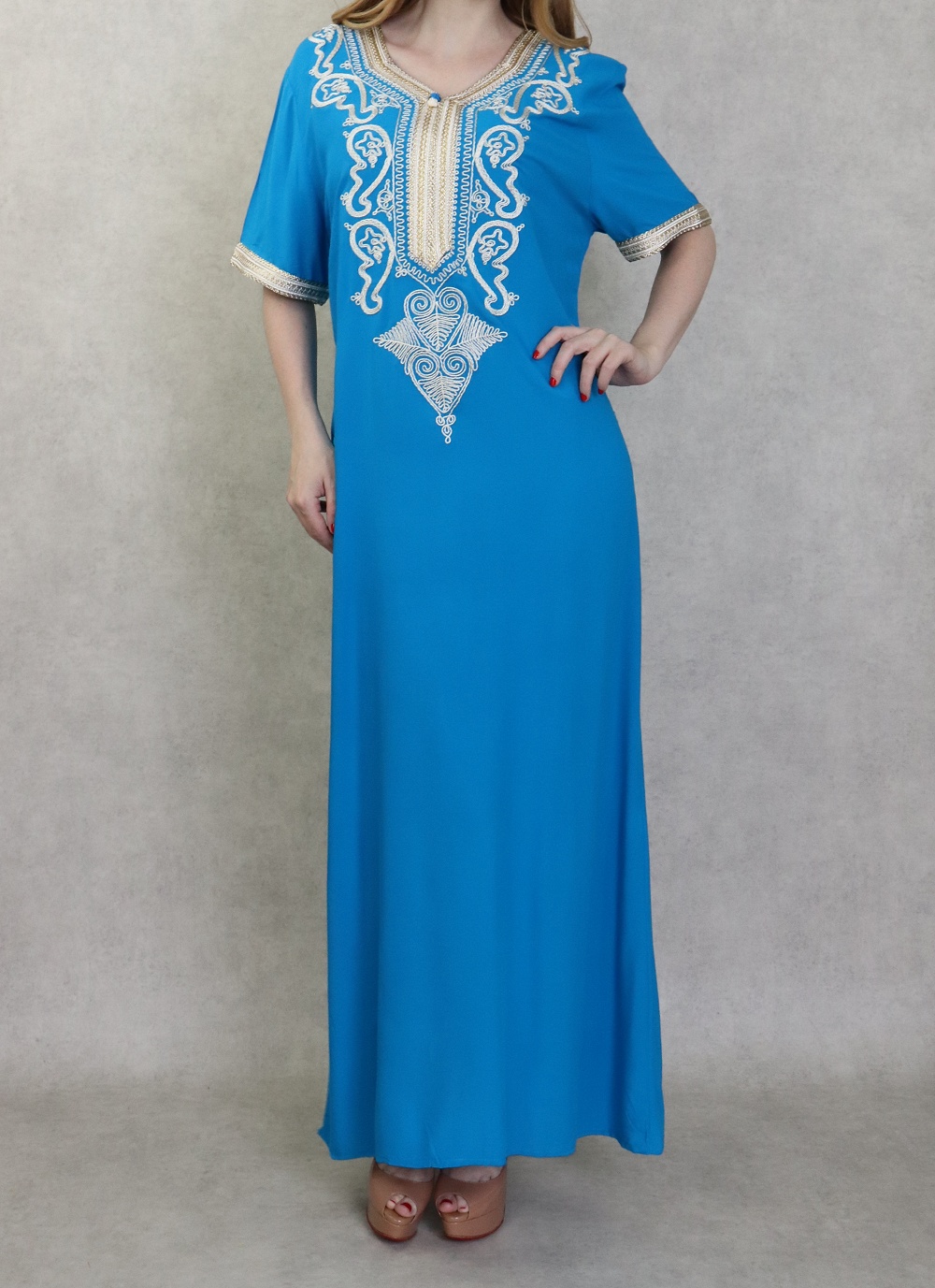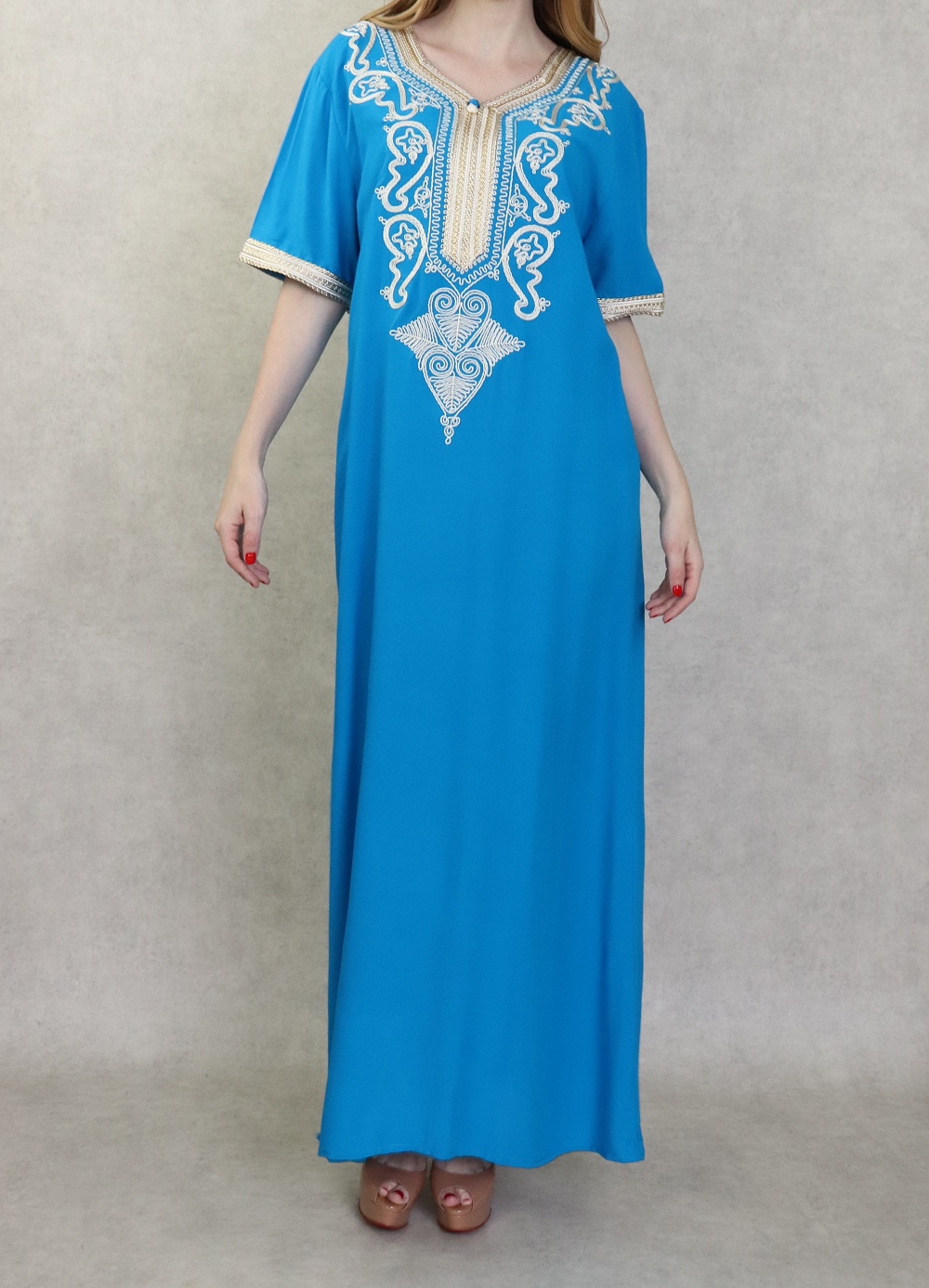 Robe longue orientale avec borderies en coton pour femme - bleu Vetement & Accessoire