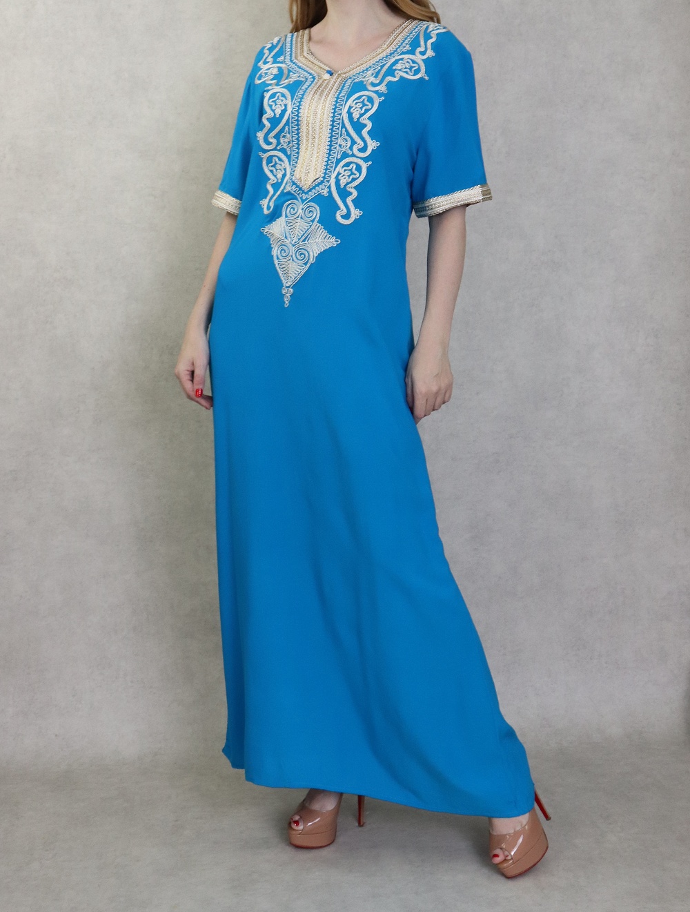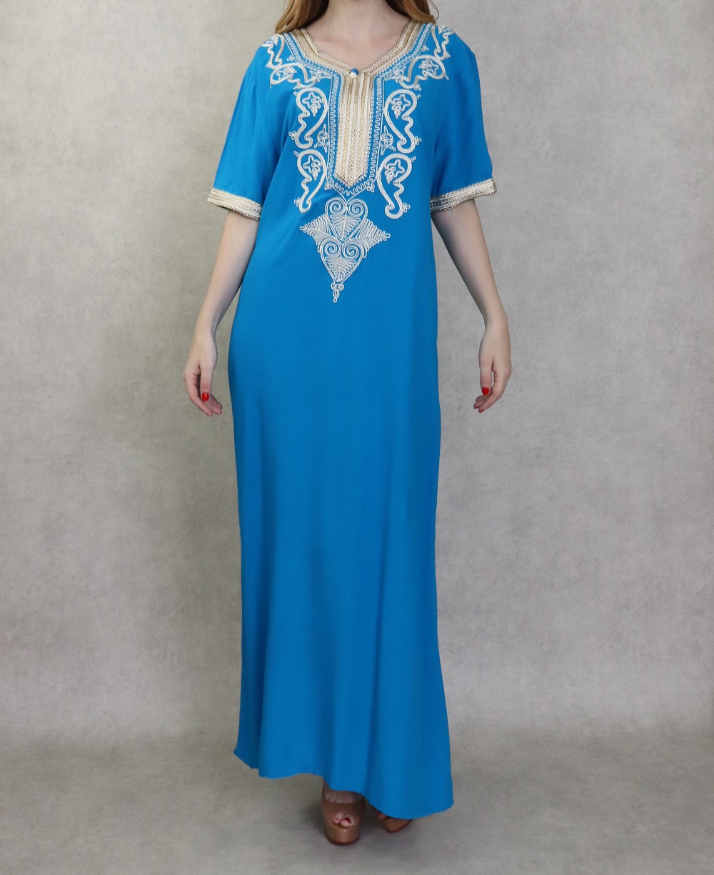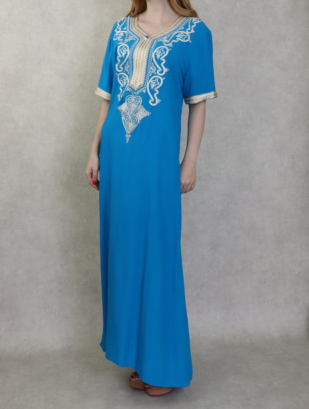 Robe longue orientale avec borderies en coton pour femme - bleu Vetement & Accessoire