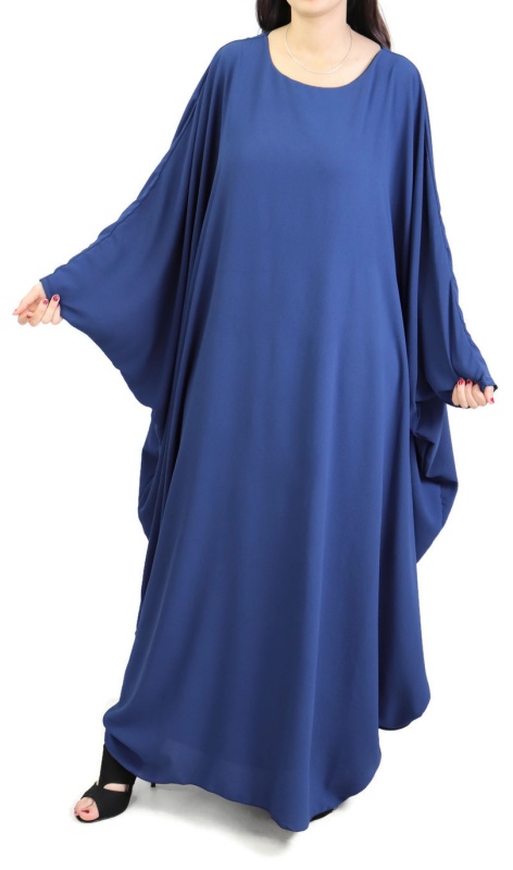 Ses manches larges et sa coupe papillon lui donnent une allure orientale. Sa couleur est sobre, elle donne le ton à la tenue.