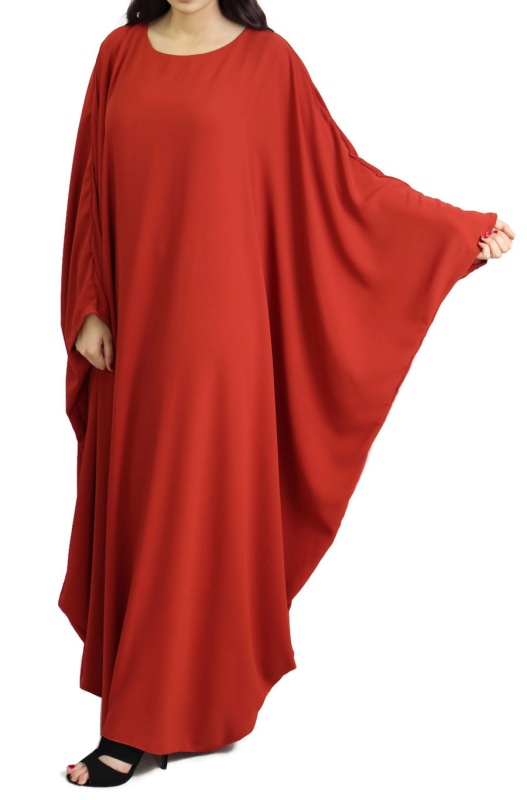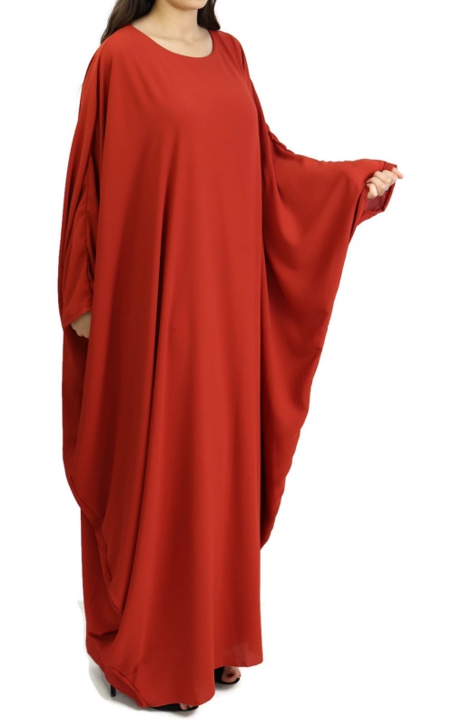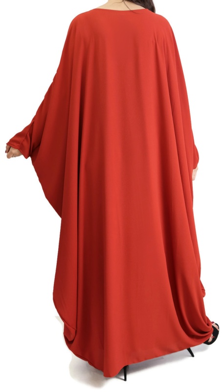 Robe longue papillon évasée avec doublure tissu crêpe de couleur rouge brique Vetement & Accessoire