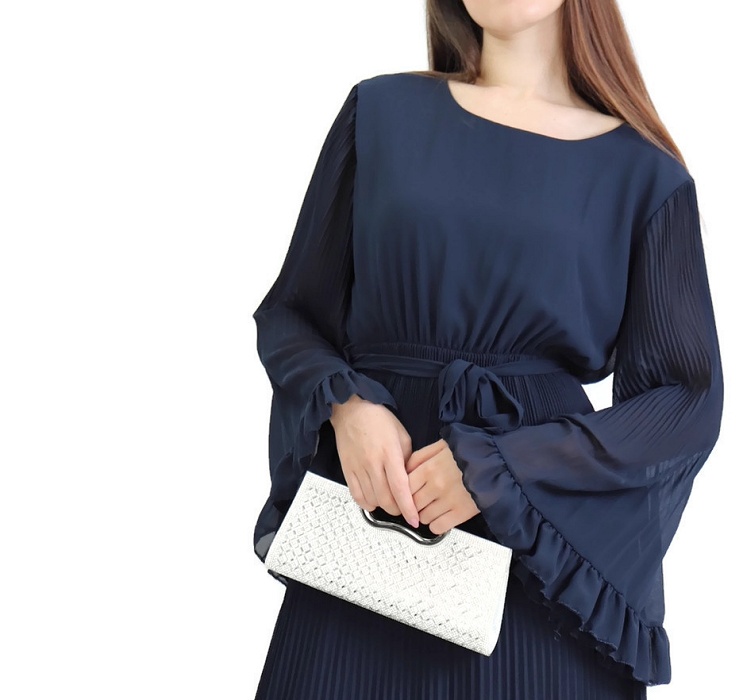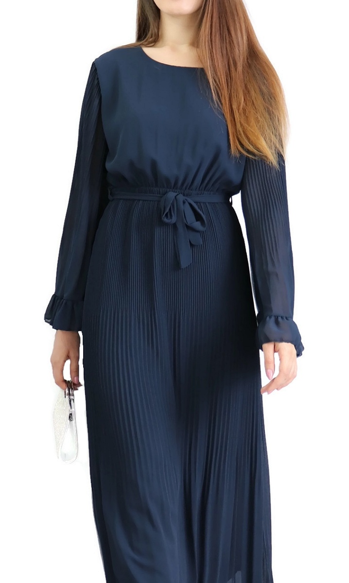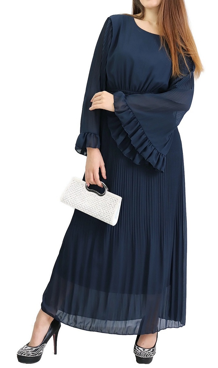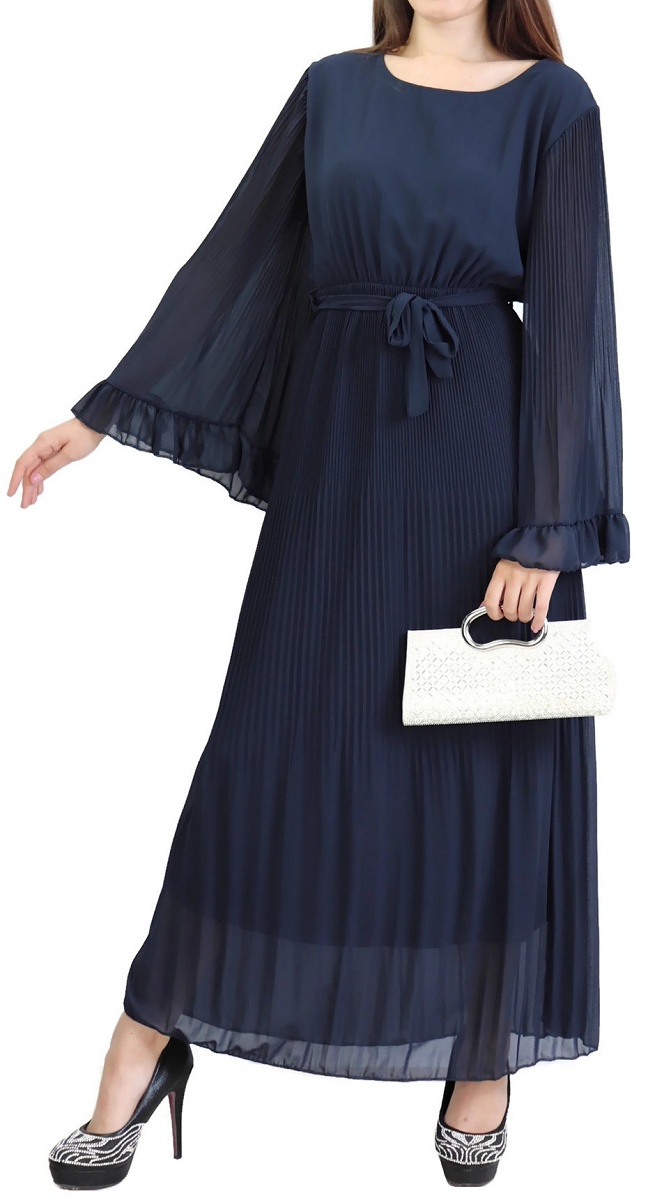 Robe longue plissée avec manches évasées - Taille Standard - Couleur Bleu marine Vetement & Accessoire