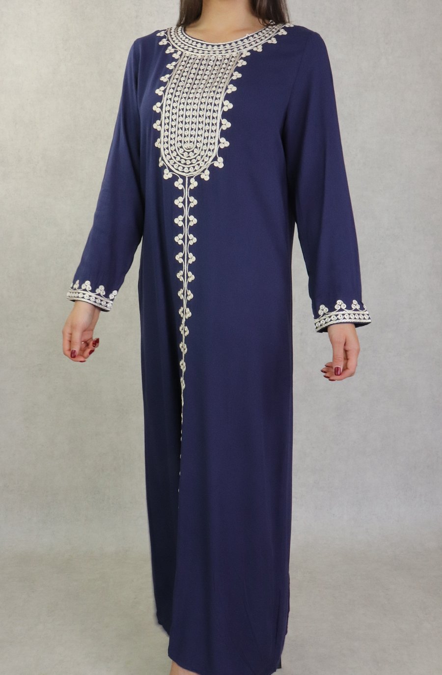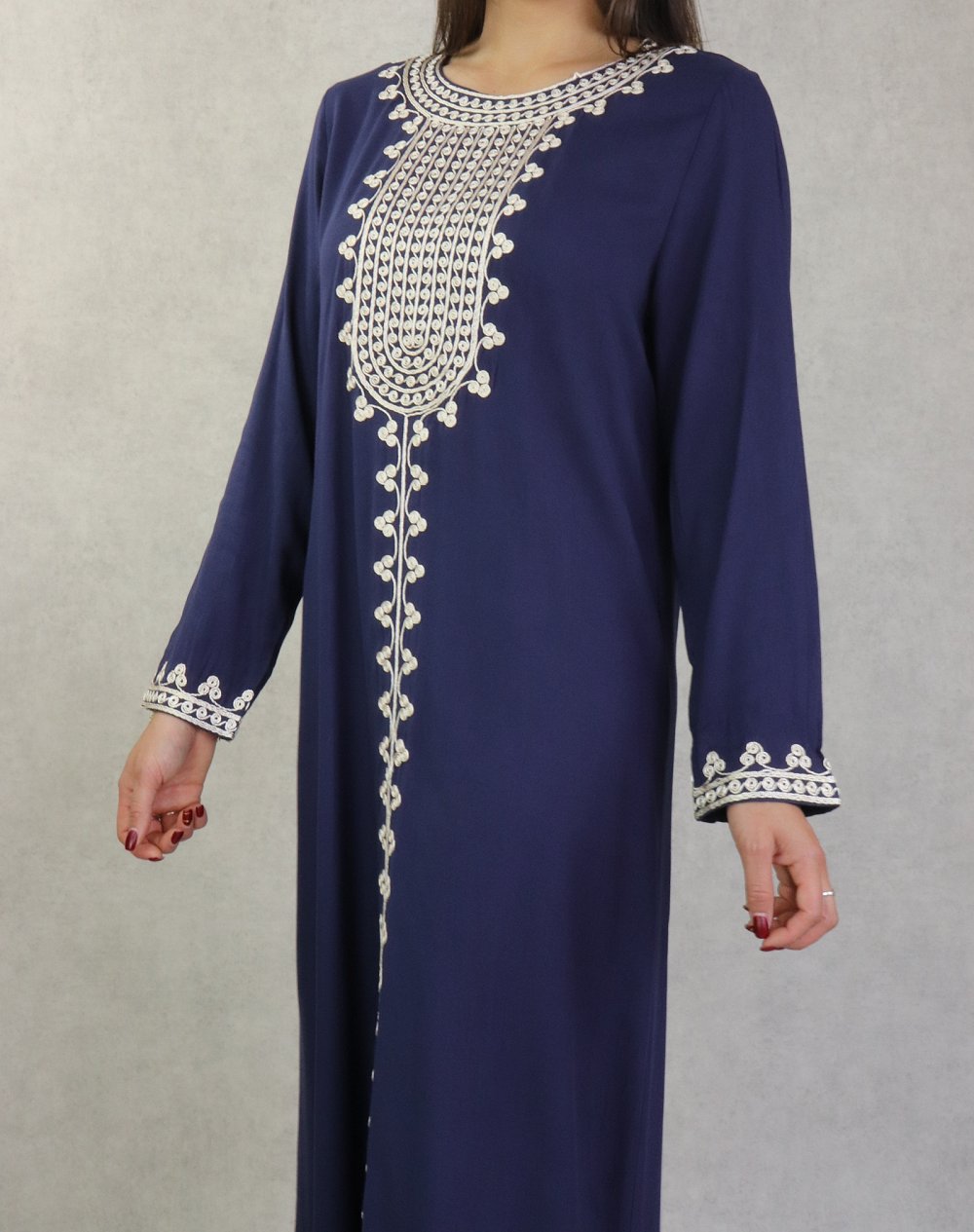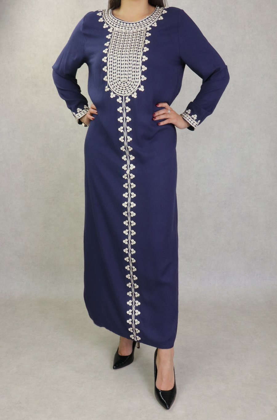 Robe longue pour femme avec broderies sur le devant et les manches - Couleur bleu marine Vetement & Accessoire