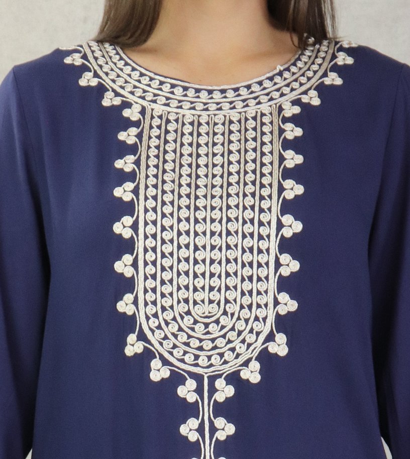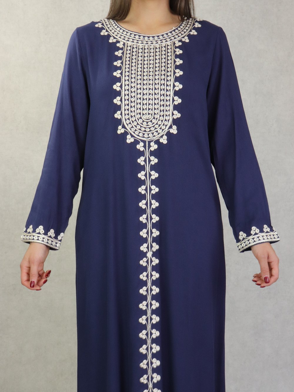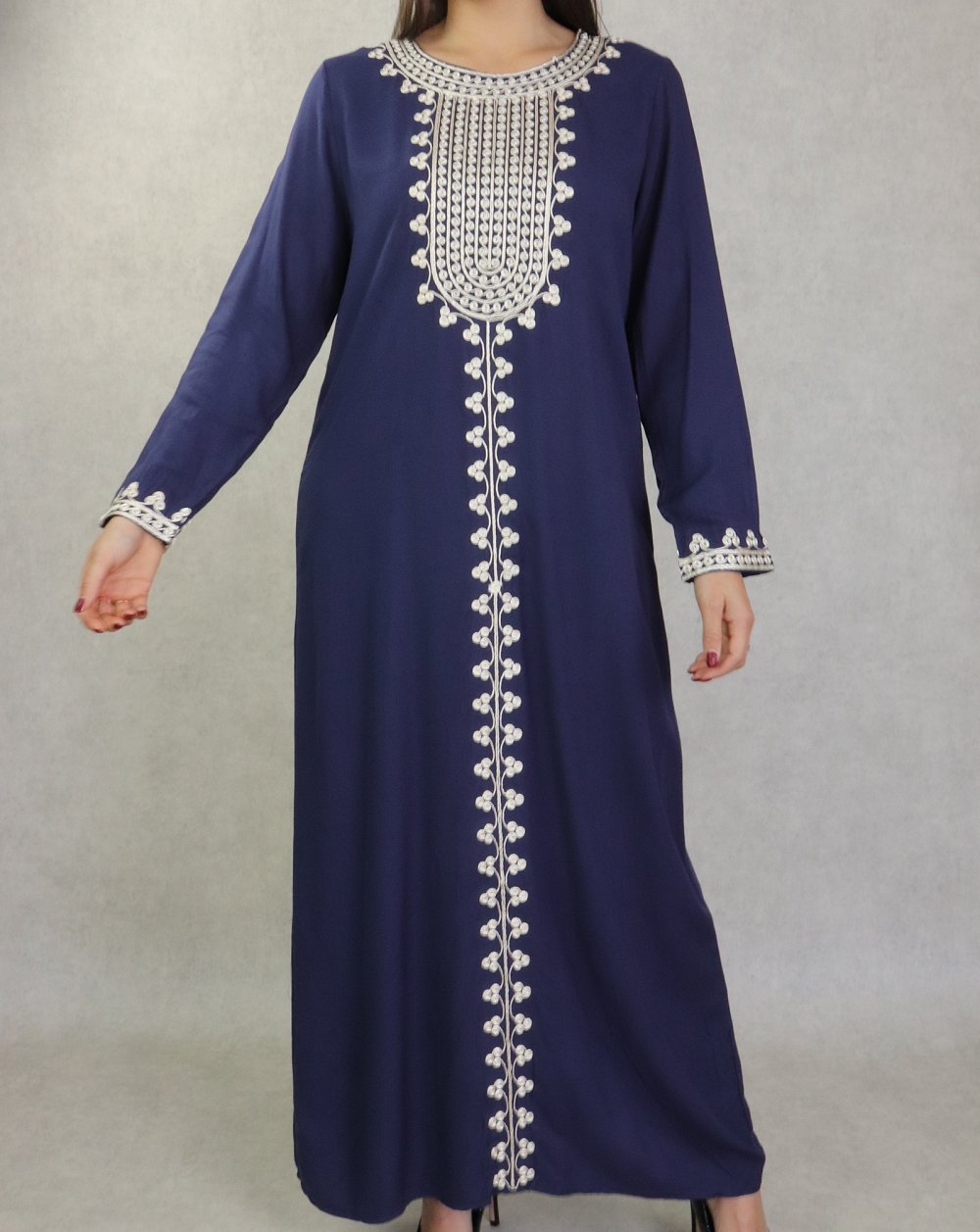 Robe longue pour femme avec broderies sur le devant et les manches - Couleur bleu marine Vetement & Accessoire