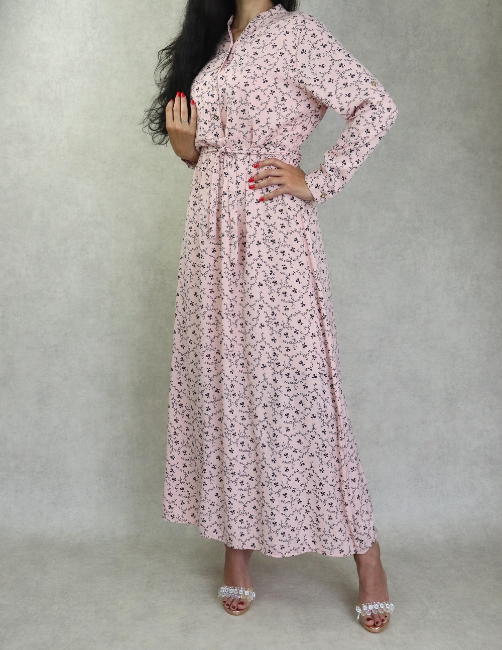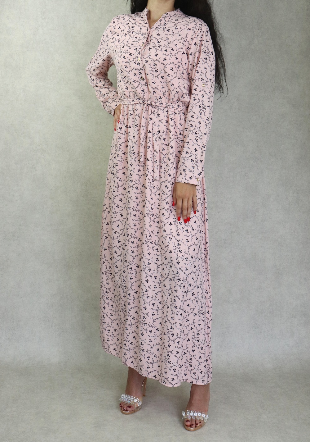 Robe longue quatre saisons fleurie pour femme - Couleur rose clair Vetement & Accessoire