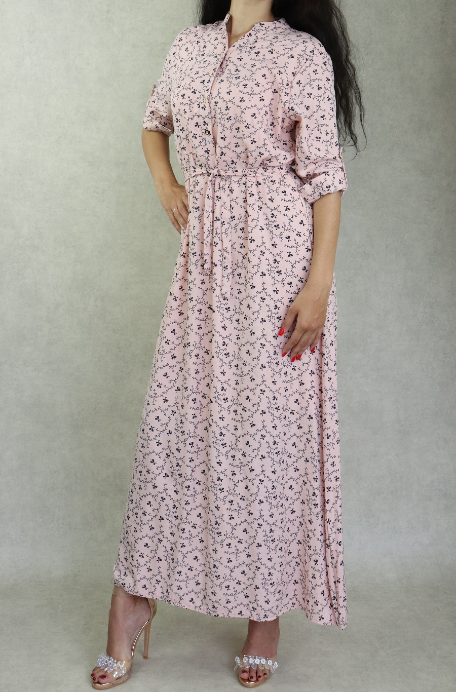Robe longue à motifs fleuris pour femme - Couleur rose clair - REF. 32977 (32.00 €)