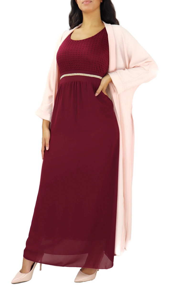 Robe longue (sans manches) à strass et dentelles - Couleur Prune Vetement & Accessoire