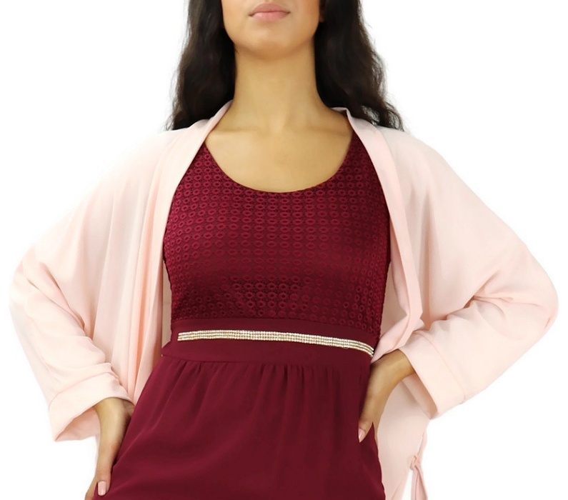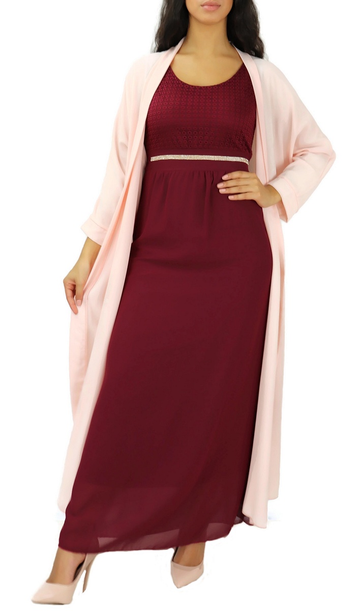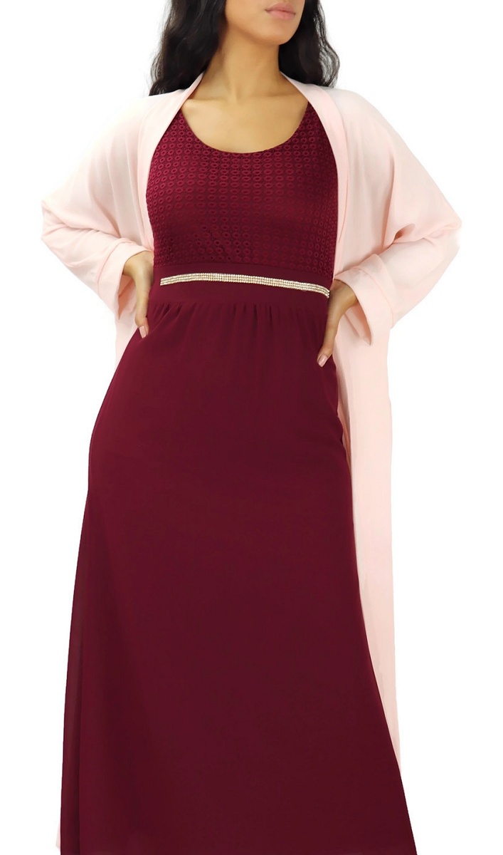 Robe longue bi-matière fluide pour femme (Vetement-Hijab moderne) - Couleur rose - REF. 33963 (25.00 €)
