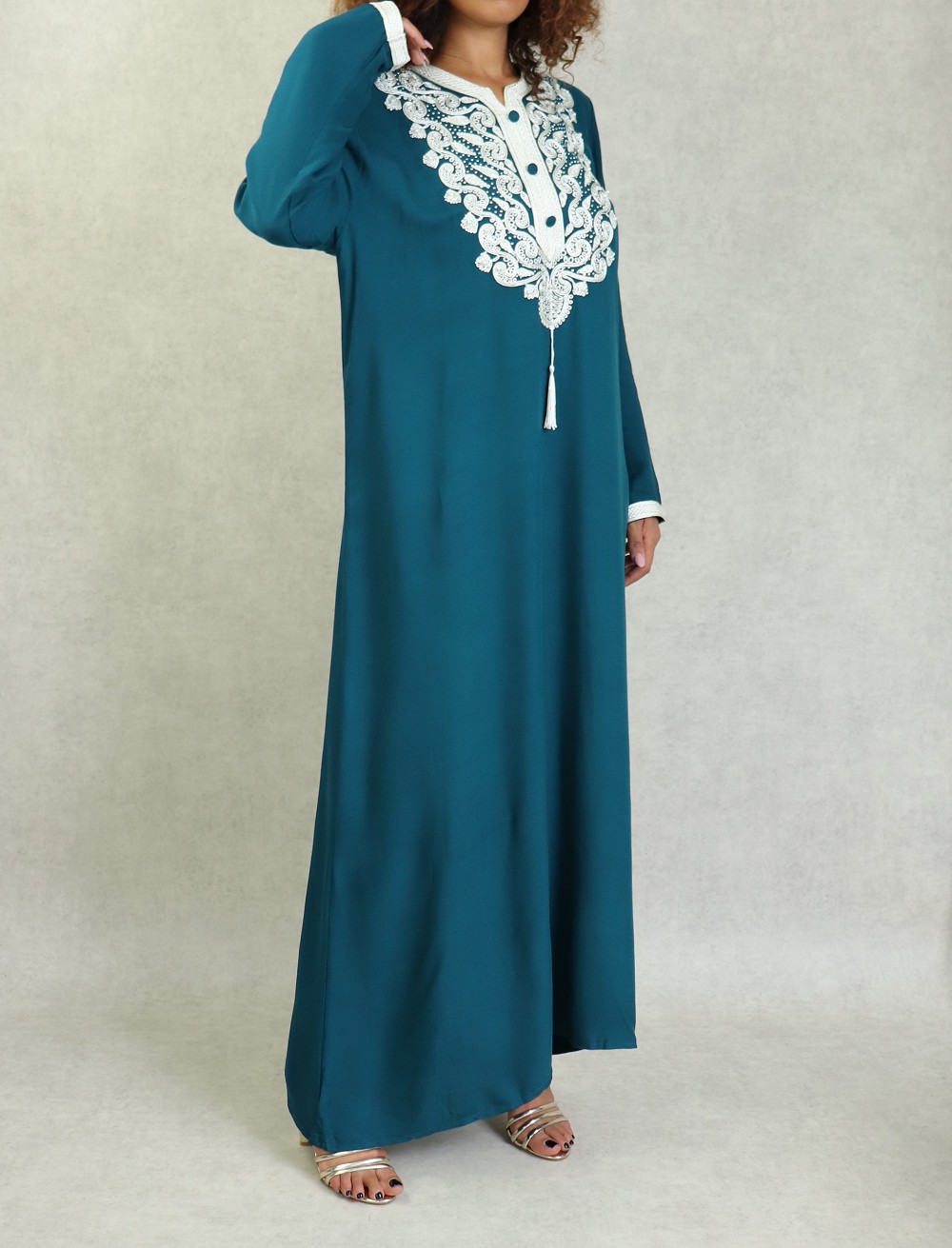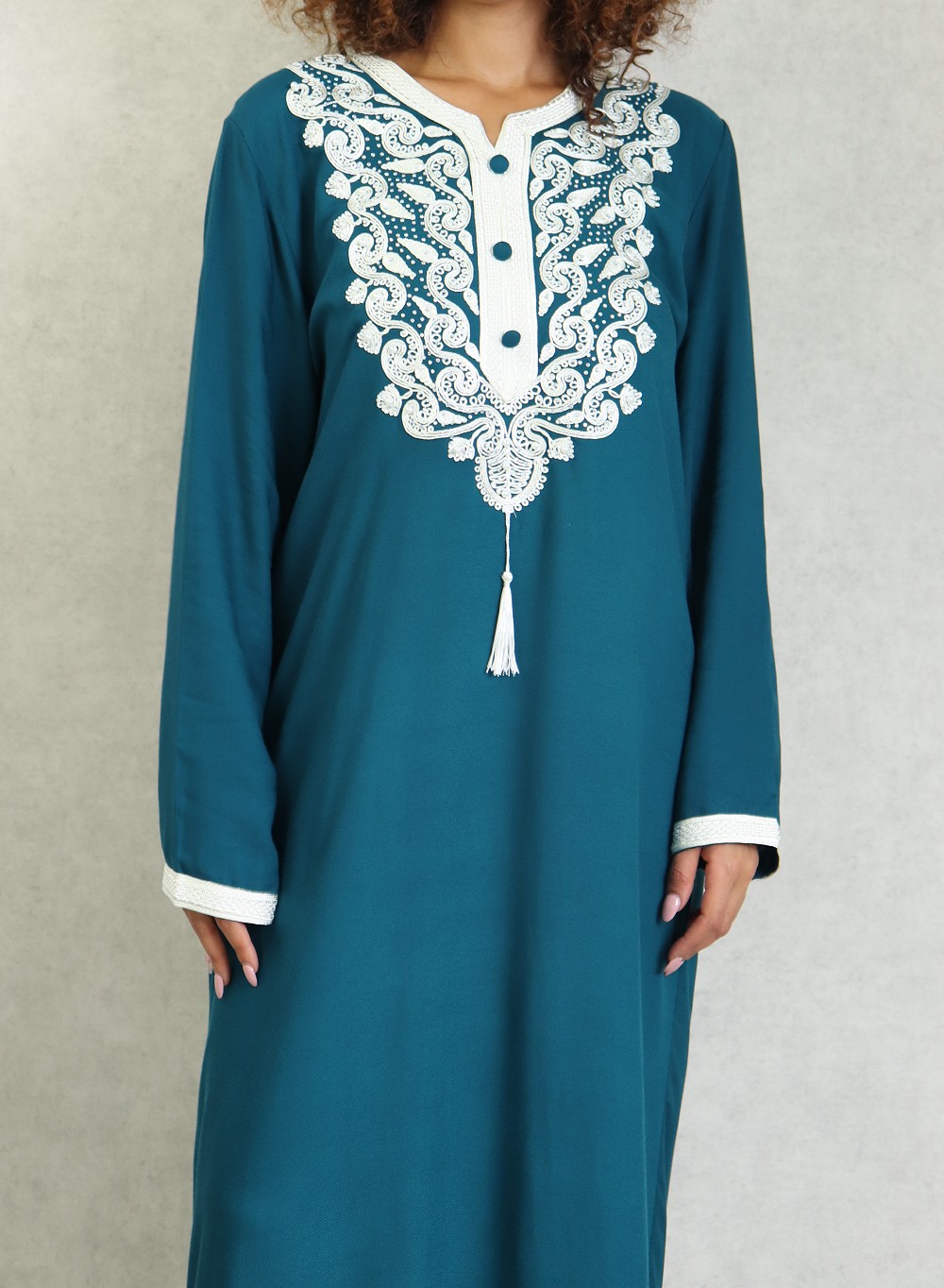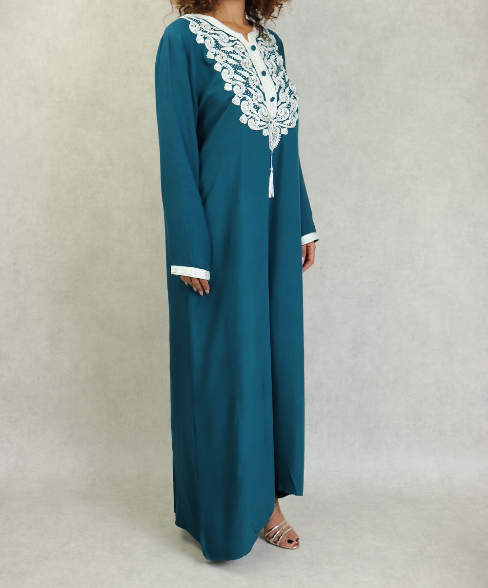 Robe longue style oriental arabe brodée pour femme - Couleur Bleu Pétrole Vetement & Accessoire