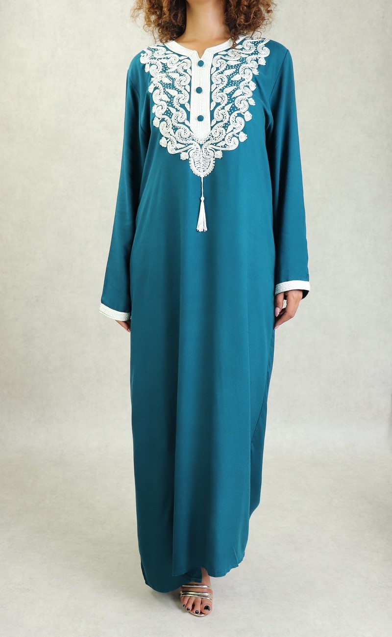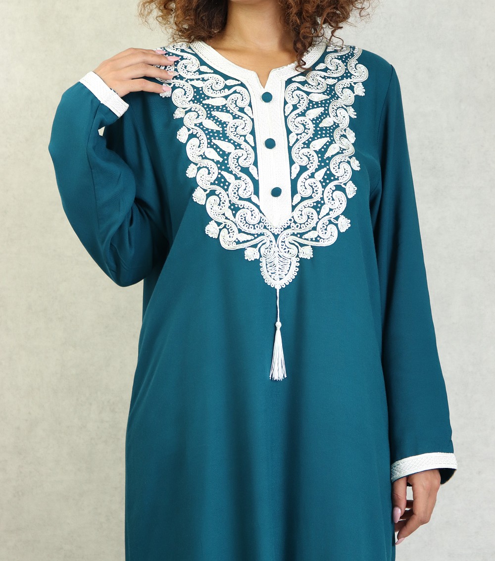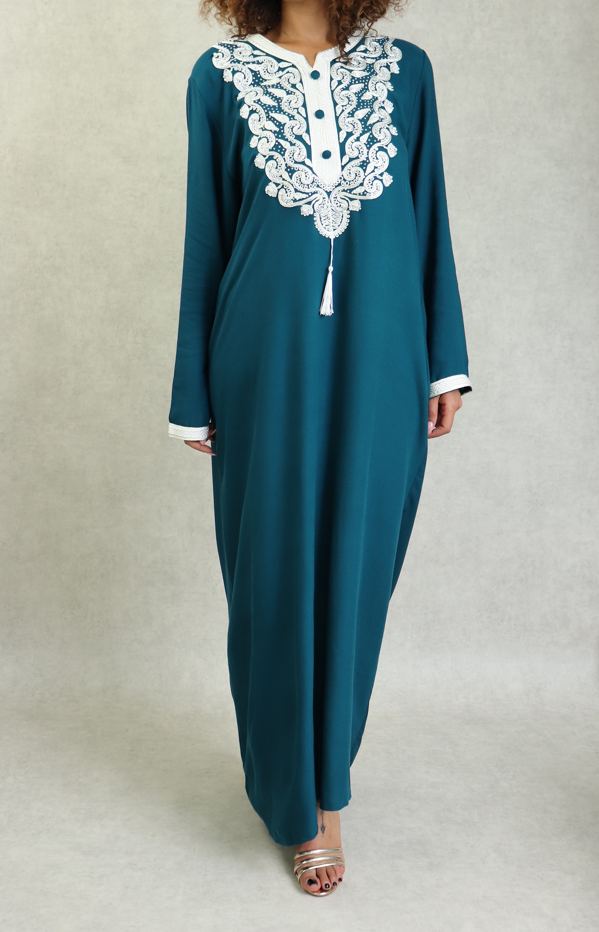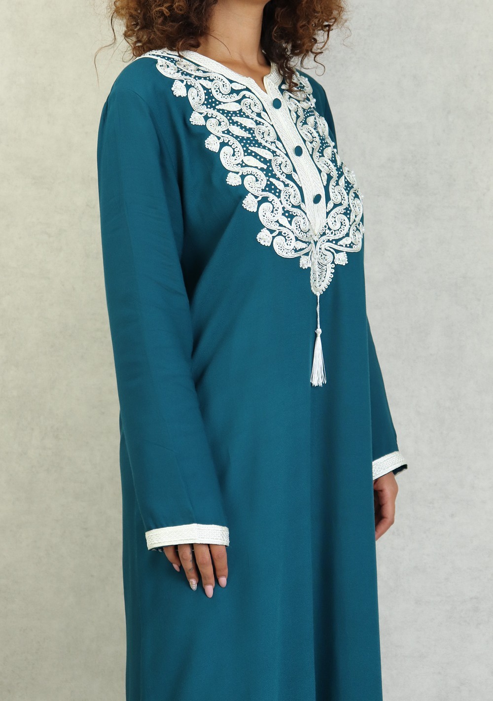 Robe longue style oriental arabe brodée pour femme - Couleur Bleu Pétrole Vetement & Accessoire