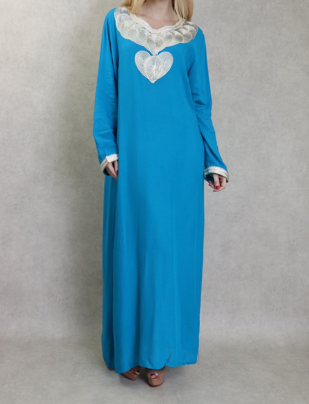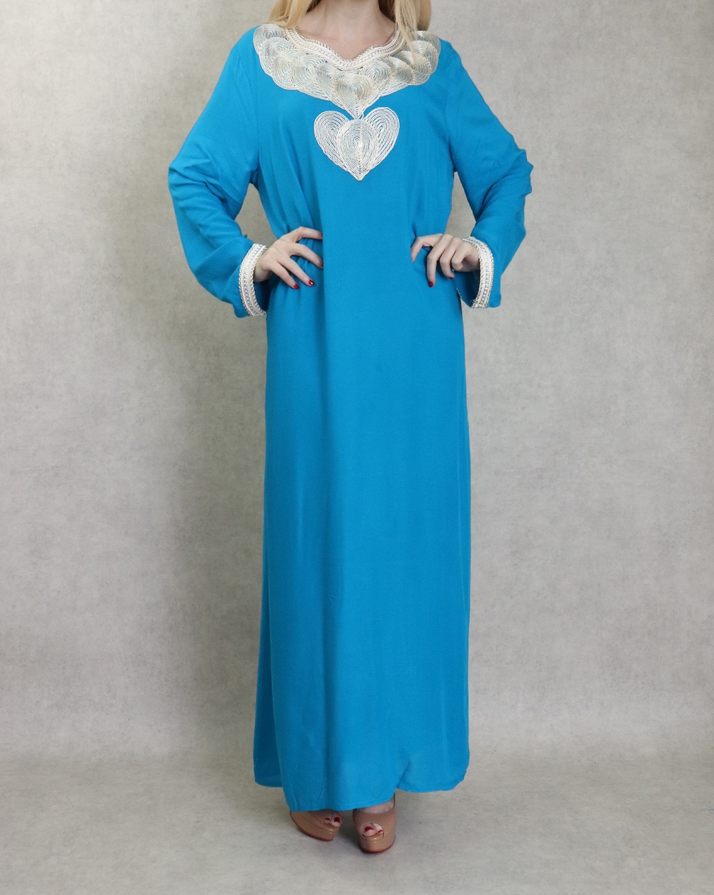 Robe longue style oriental avec borderie originale sous forme de coeur pour femme - Couleur bleu Vetement & Accessoire