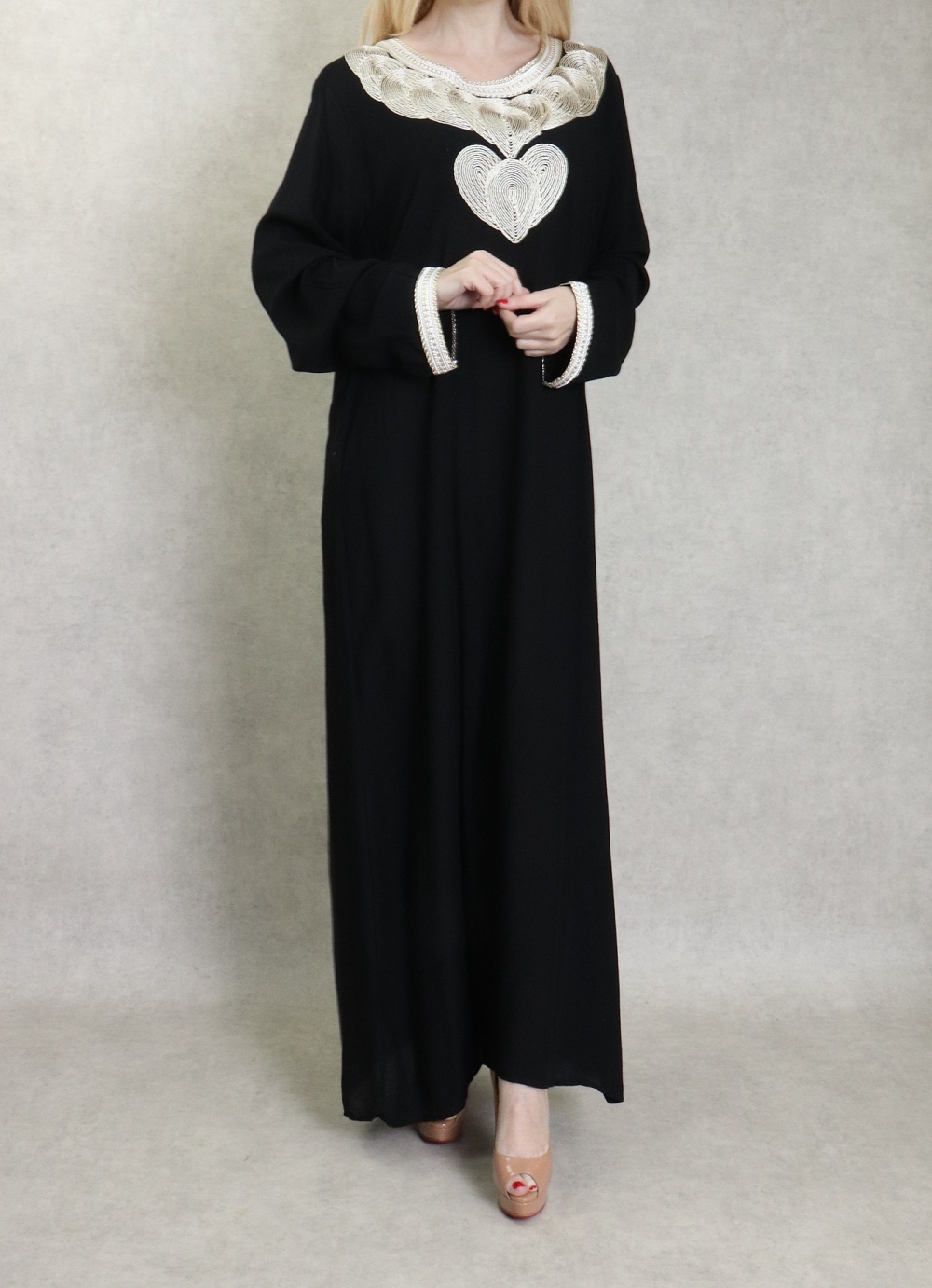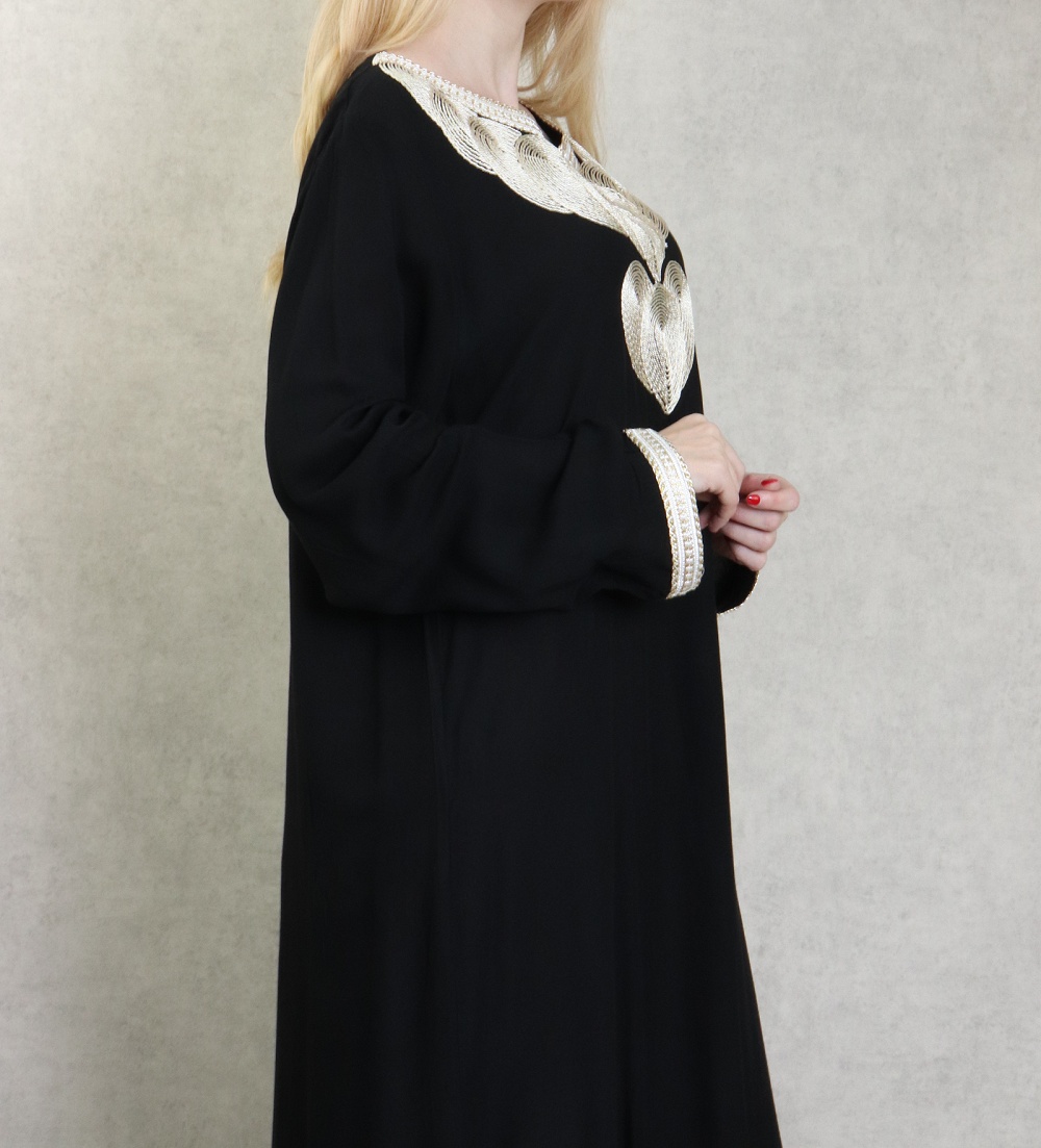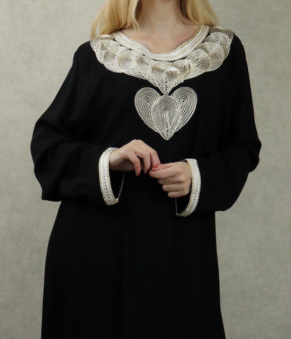 Robe longue style oriental avec borderie originale sous forme de coeur pour femme - Couleur noir Vetement & Accessoire