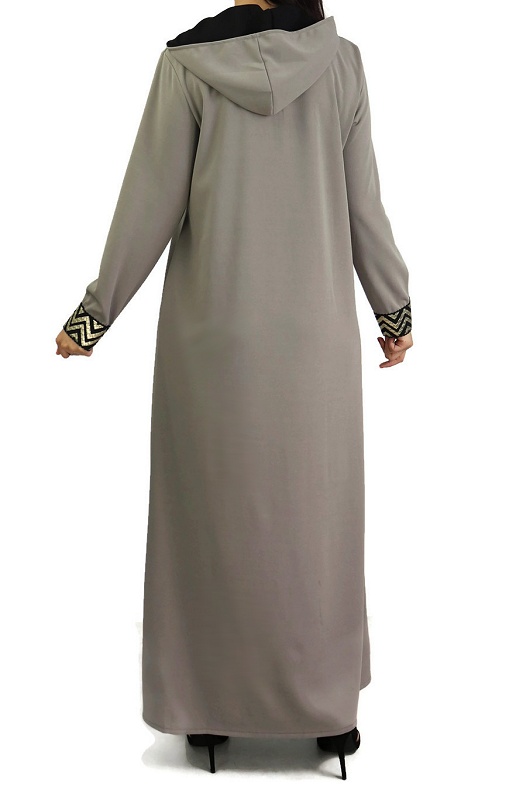 Robe longue type abaya marocaine pour femme avec capuche et motifs dorés - Couleur taupe Vetement & Accessoire