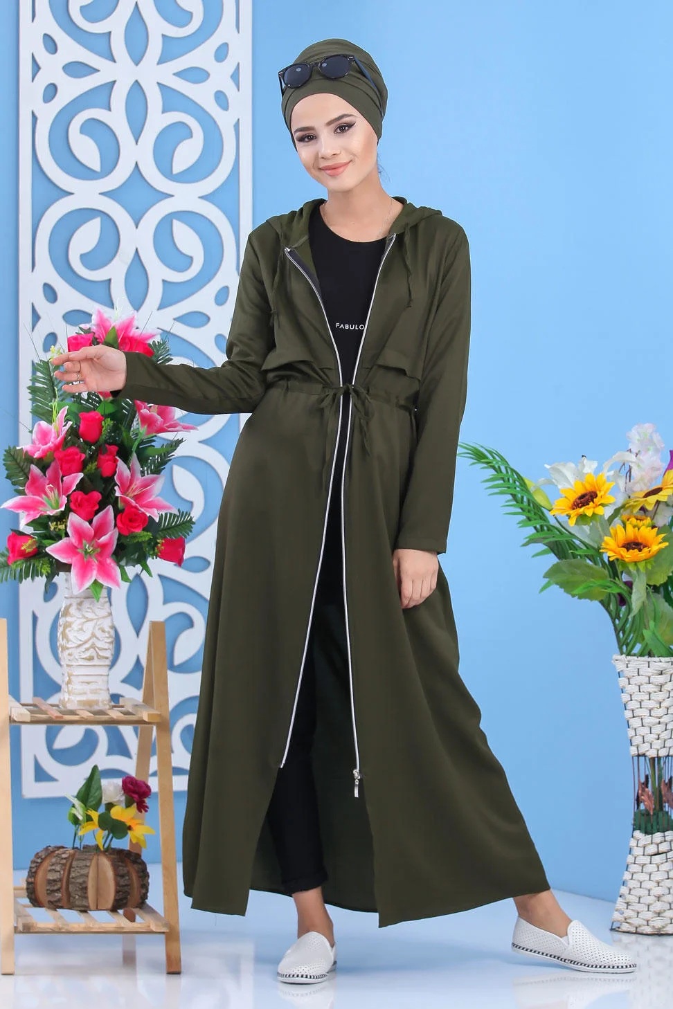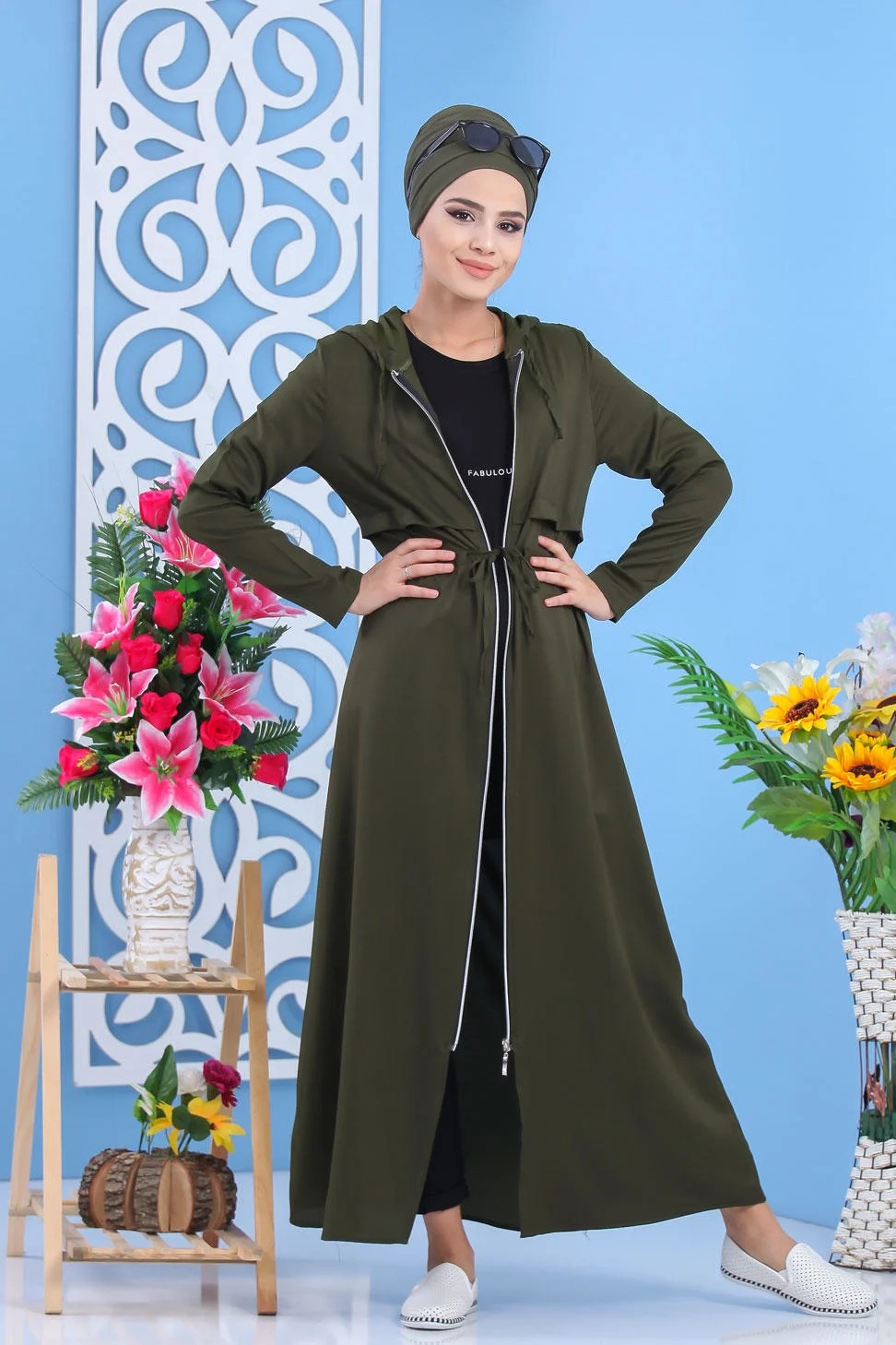 Robe Gilet pour femme (Tenue Hijab Chic Saison Automne-Hiver) - Couleur kaki - REF. 35607 (28.00 €) - En Promotion à 22.00 €