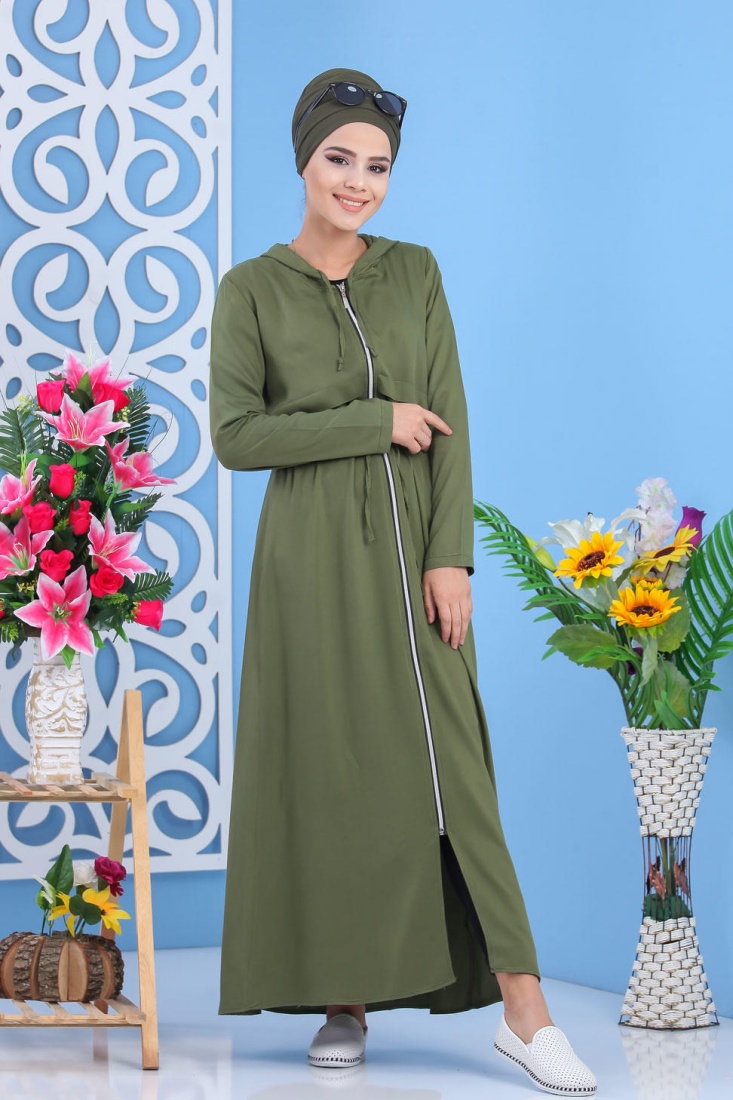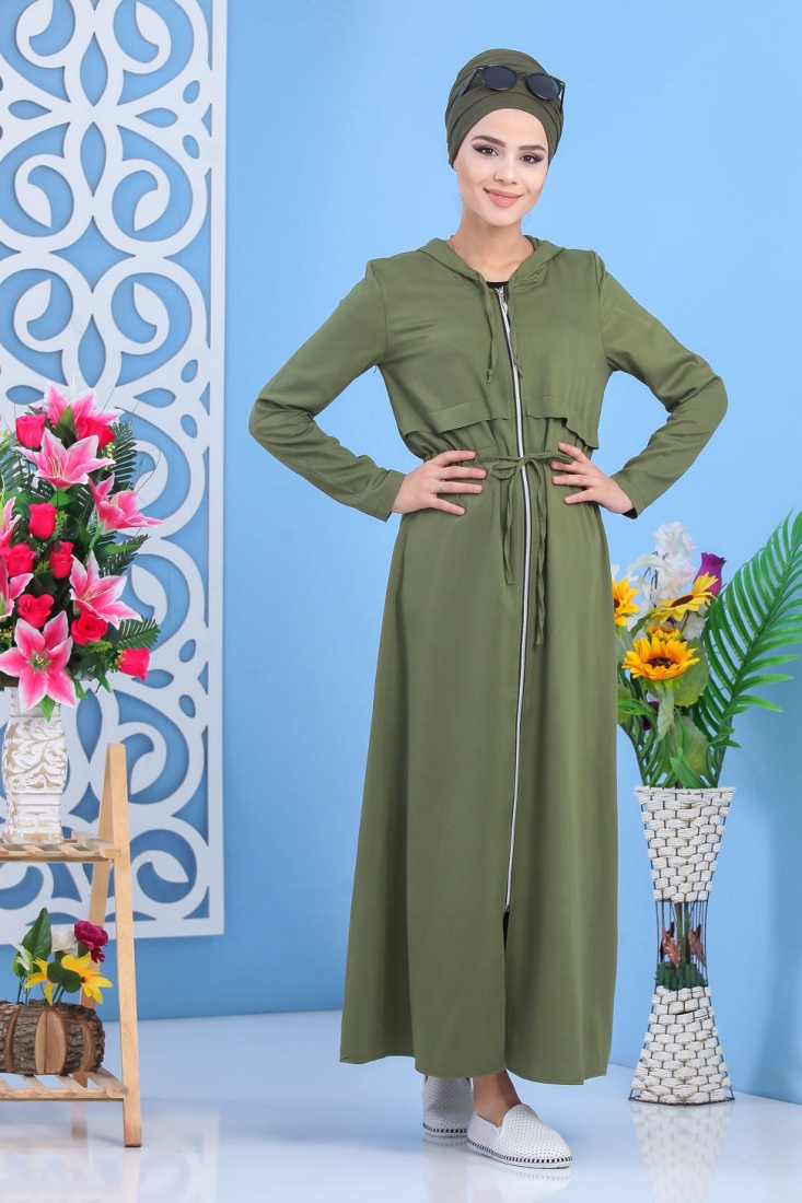 Robe longue zippee a capuche pour femme style decontracte de marque Amelis Paris - Couleur Kaki