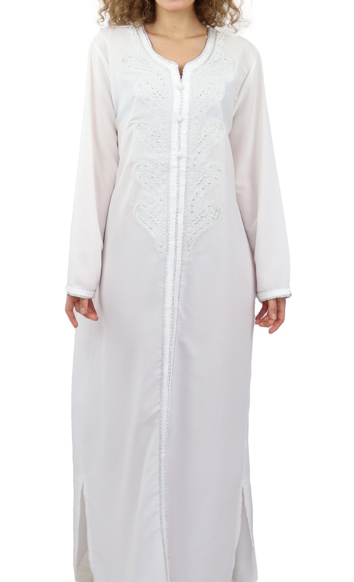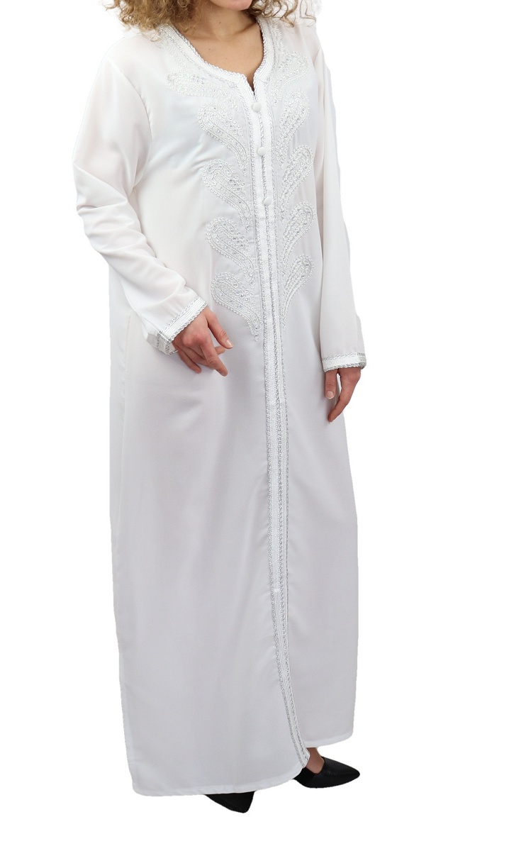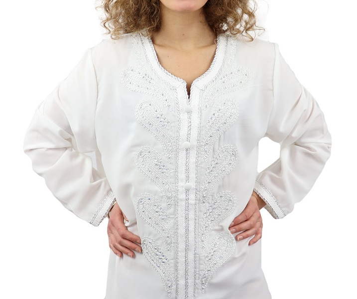Robe marocaine de couleur blanche avec broderies et strass Vetement & Accessoire