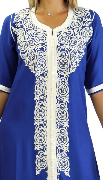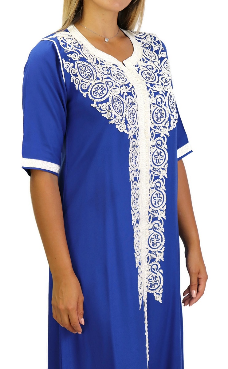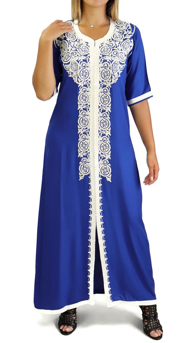 Robe marocaine traditionnelle brodée pour femme - Manches courtes - Couleur Bleu roi Vetement & Accessoire