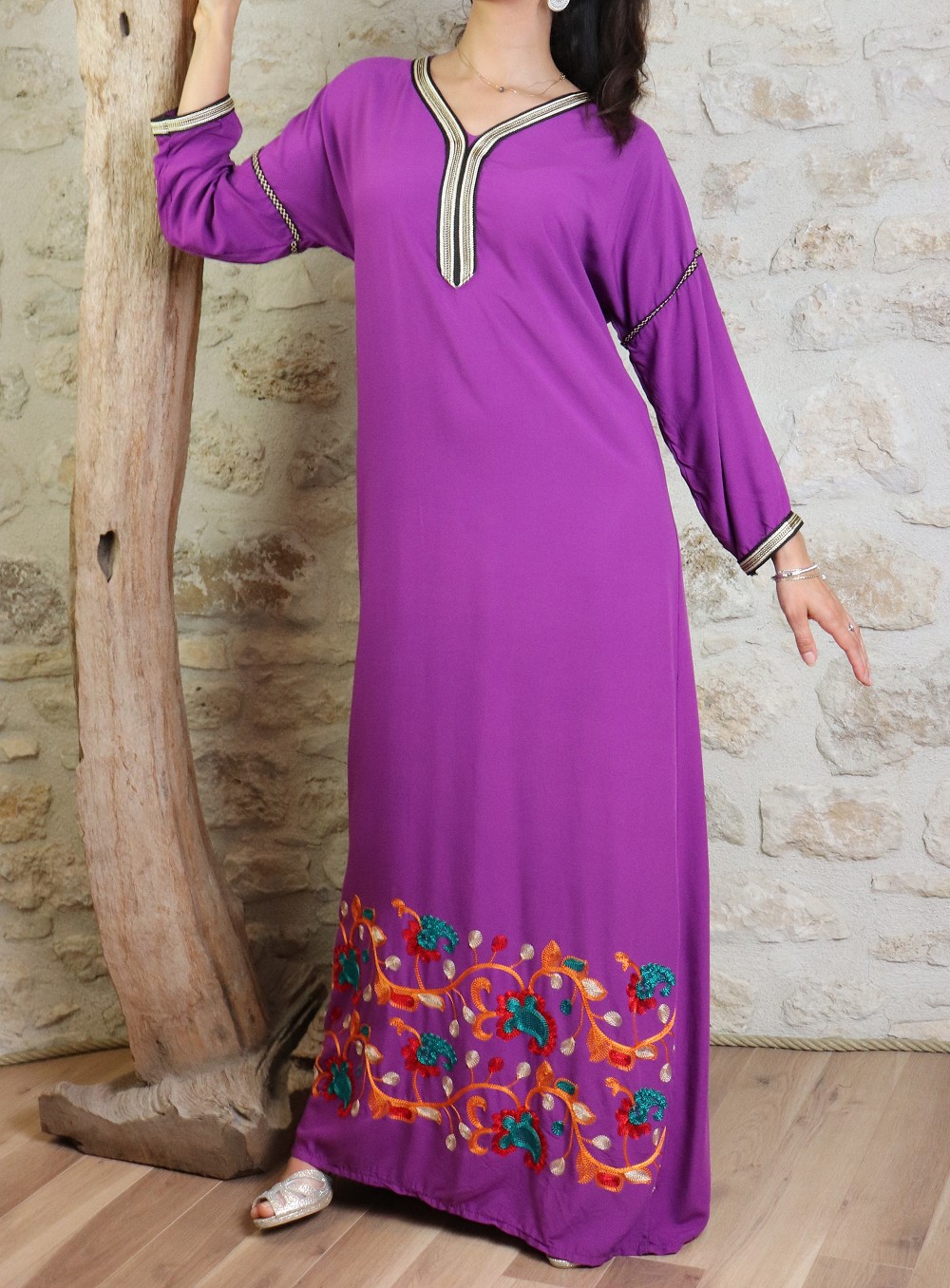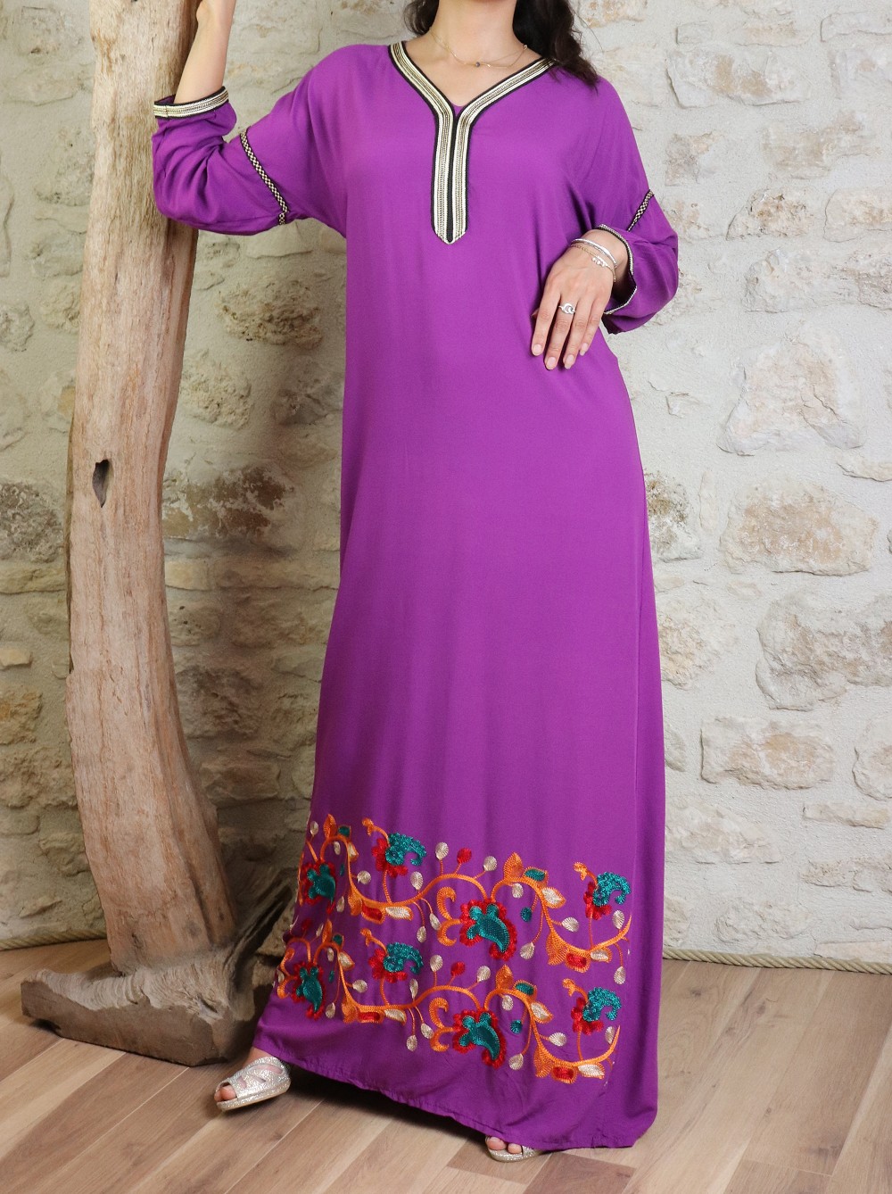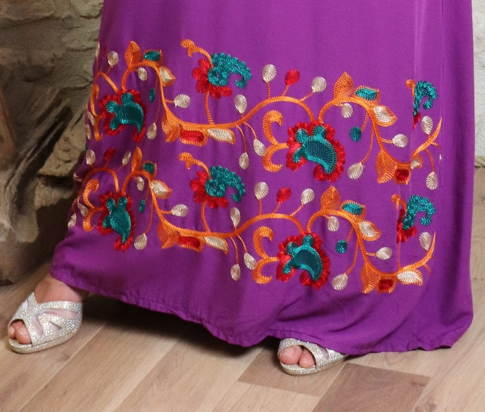 Robe max-longue brodée sobre et élégante pour femme - Couleur mauve Vetement & Accessoire