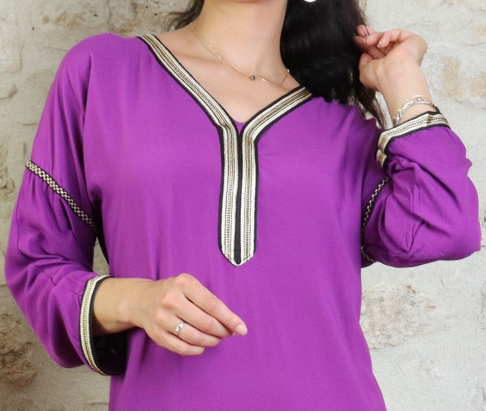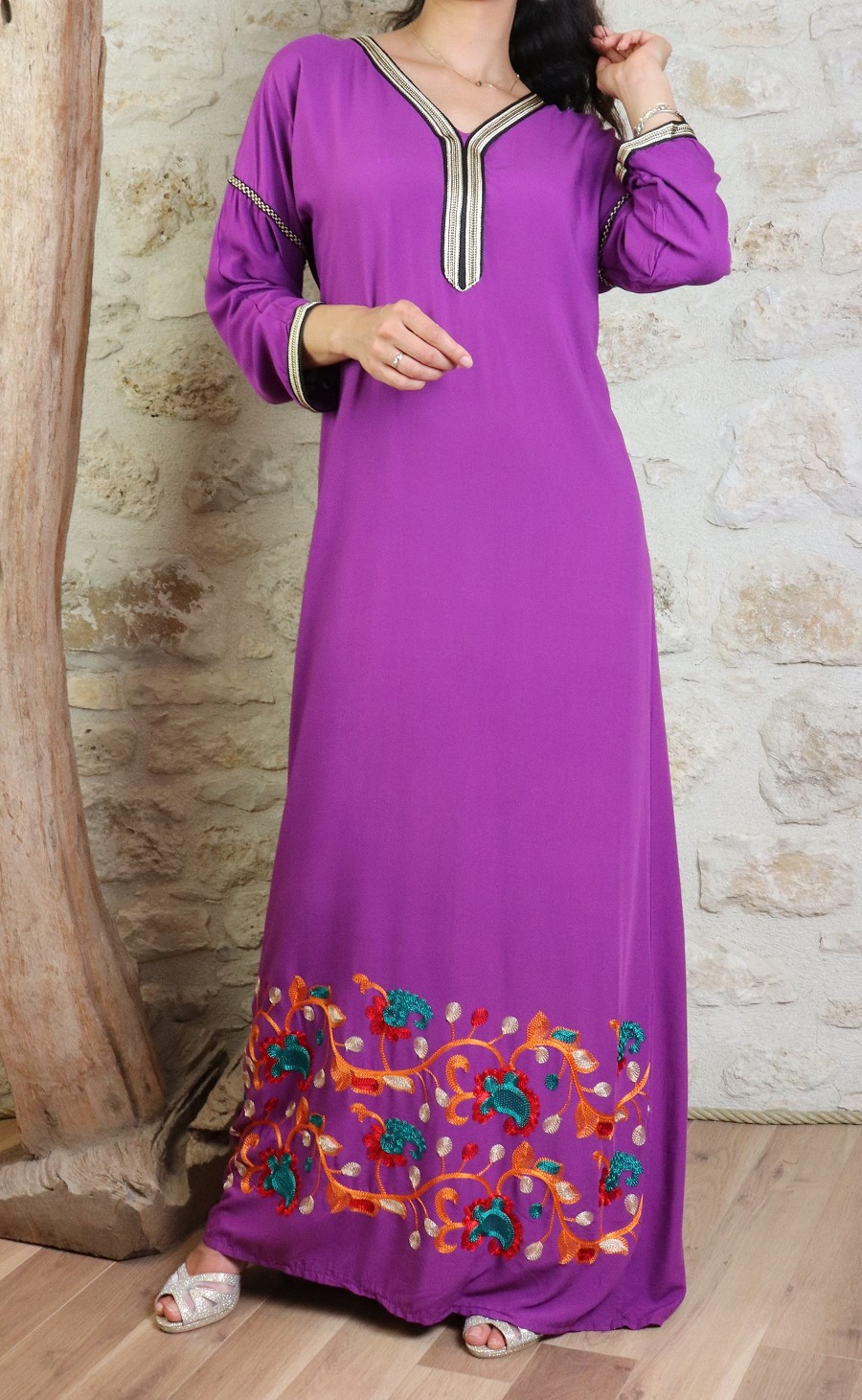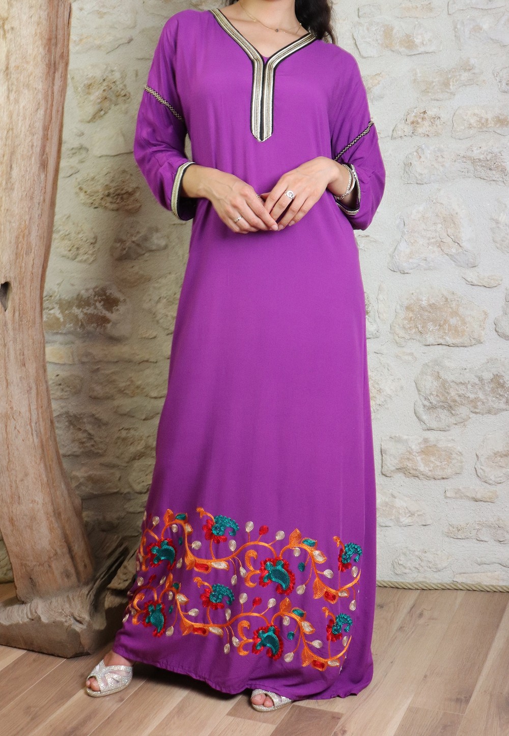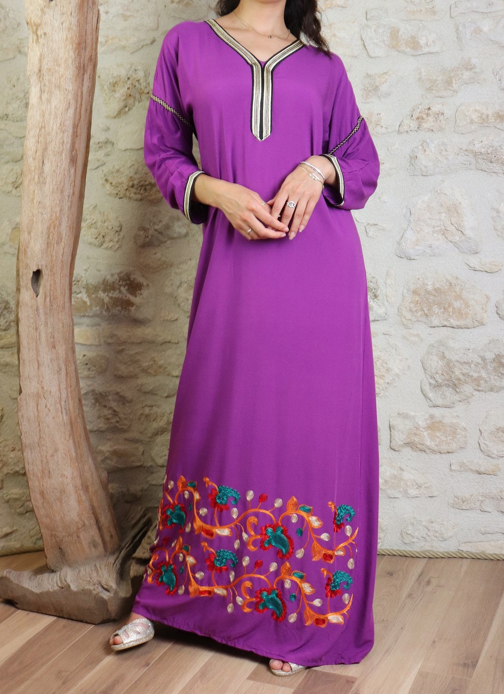 Robe max-longue brodée sobre et élégante pour femme - Couleur mauve Vetement & Accessoire