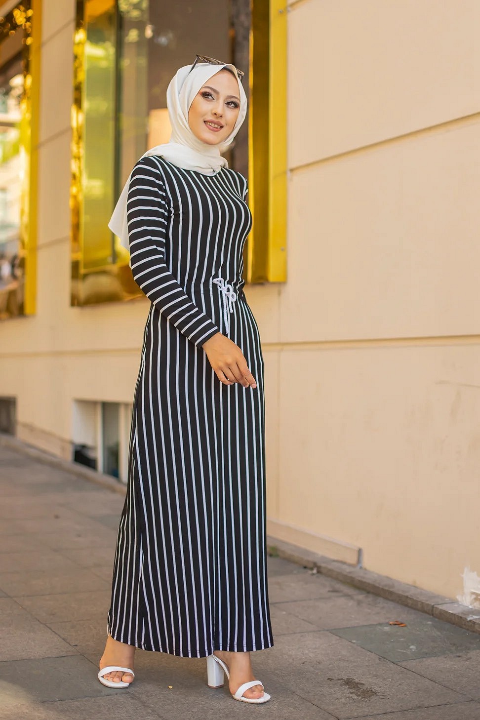 Robe maxi-longue à rayures noire (Vetement Hijab pour femme) Vetement & Accessoire