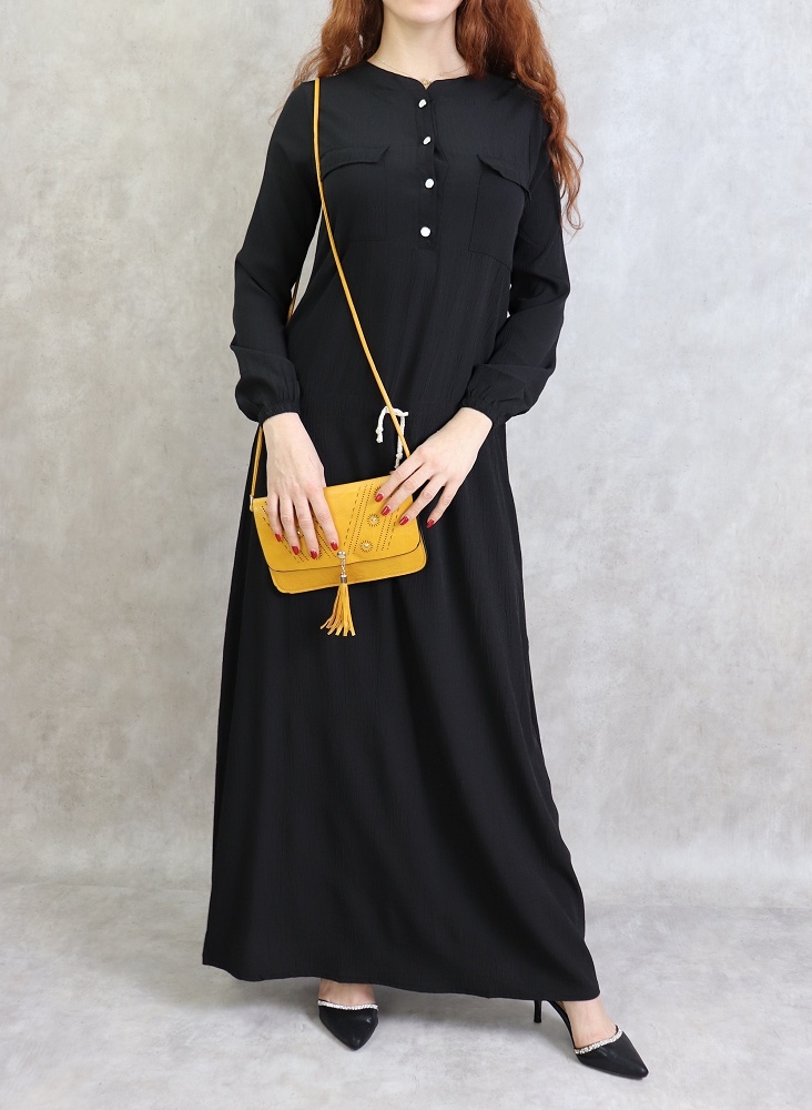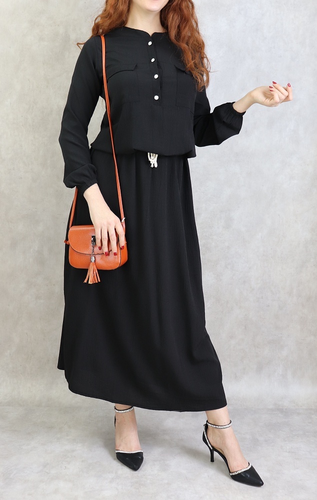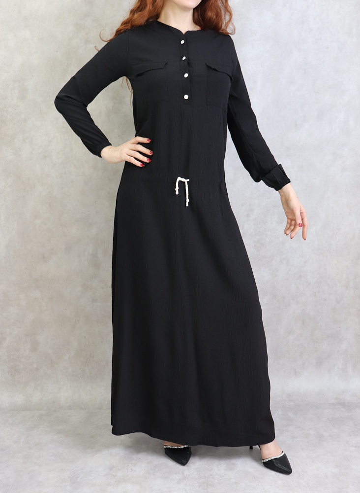 Robe maxi-longue taille basse (Tenue Casual et moderne pour femme) - Couleur noire Vetement & Accessoire