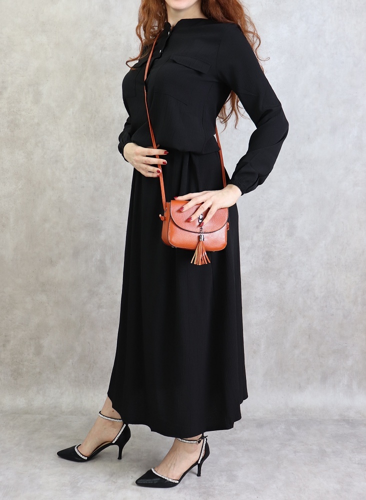 Robe longue manches évasées avec sa ceinture - Couleur caramel - REF. 31017 (34.00 €)