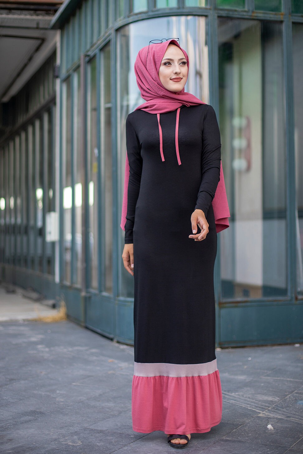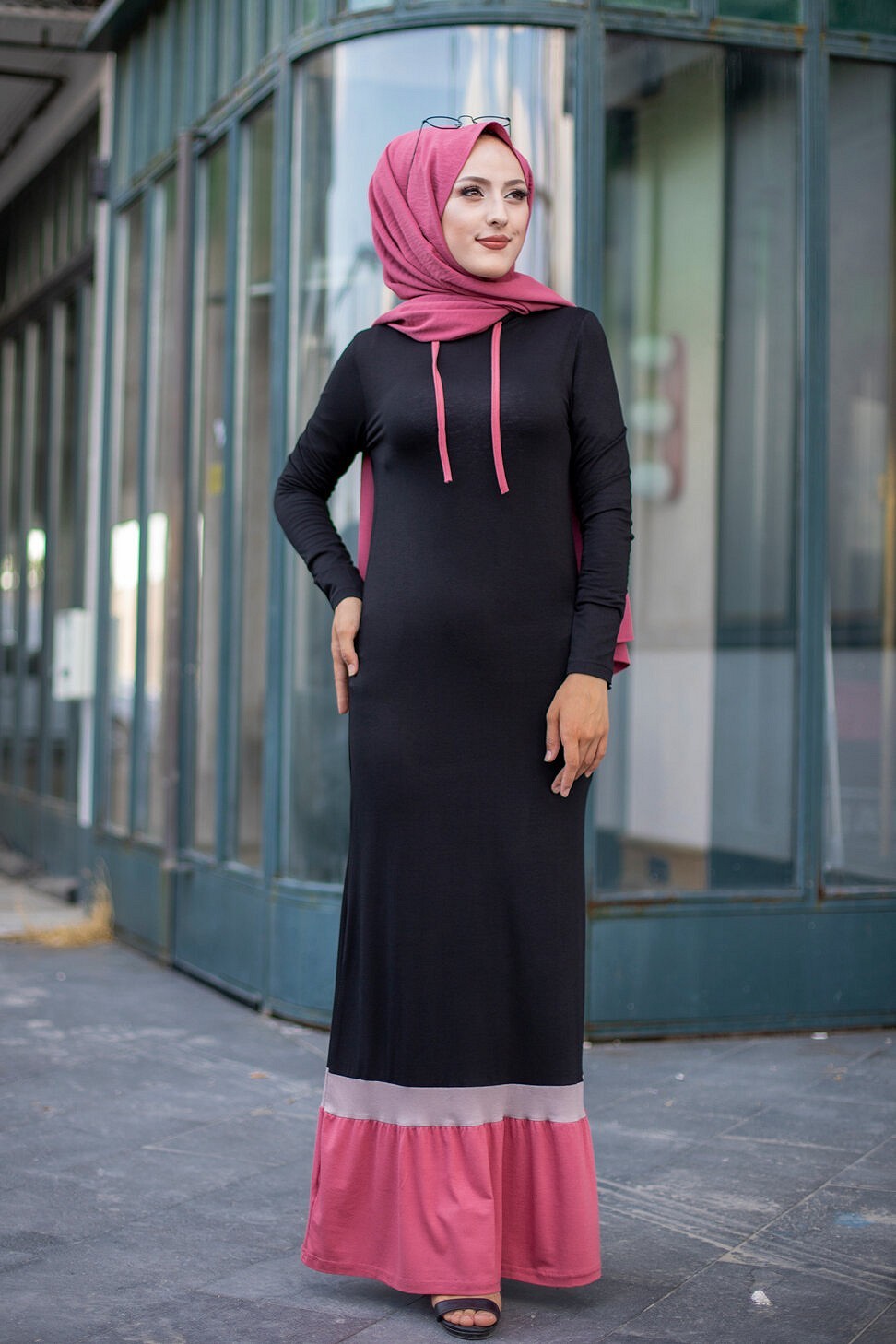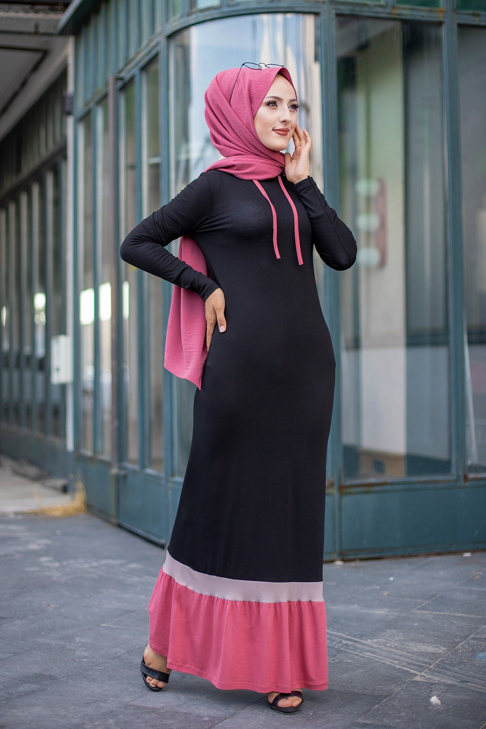 Robe noire et rose avec capuche style moderne pour femme