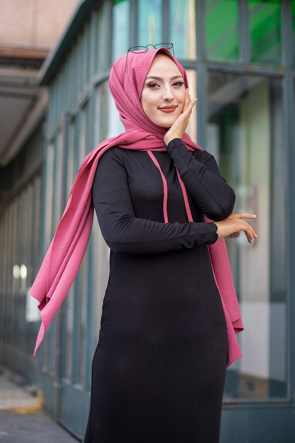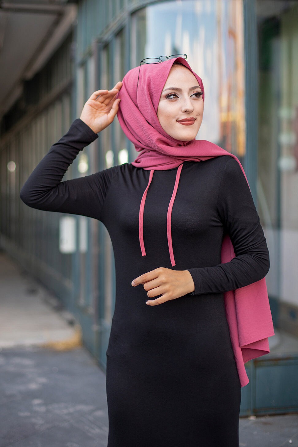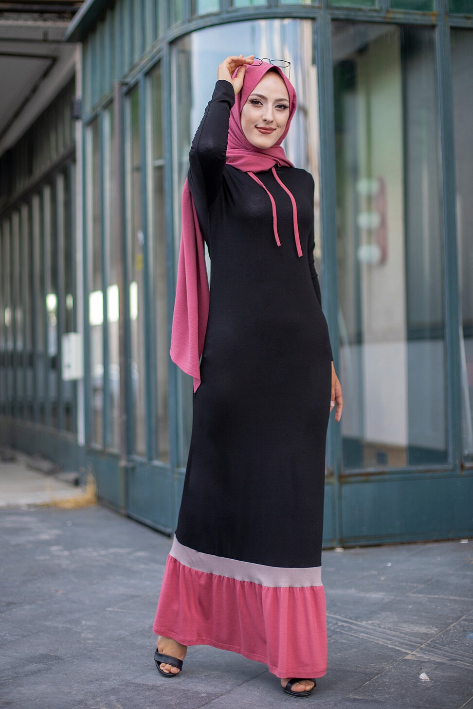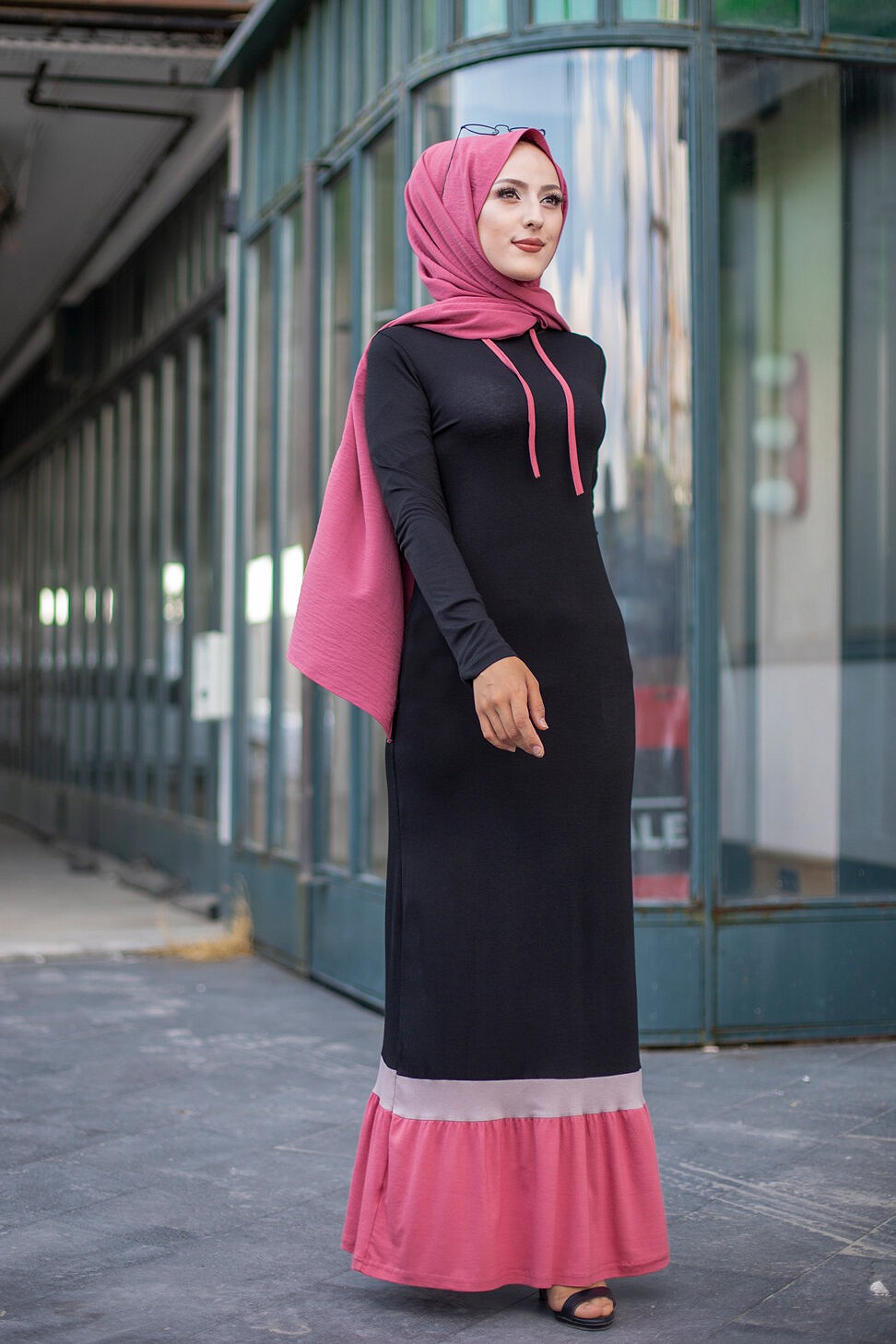 Robe noire et rose avec capuche style moderne pour femme