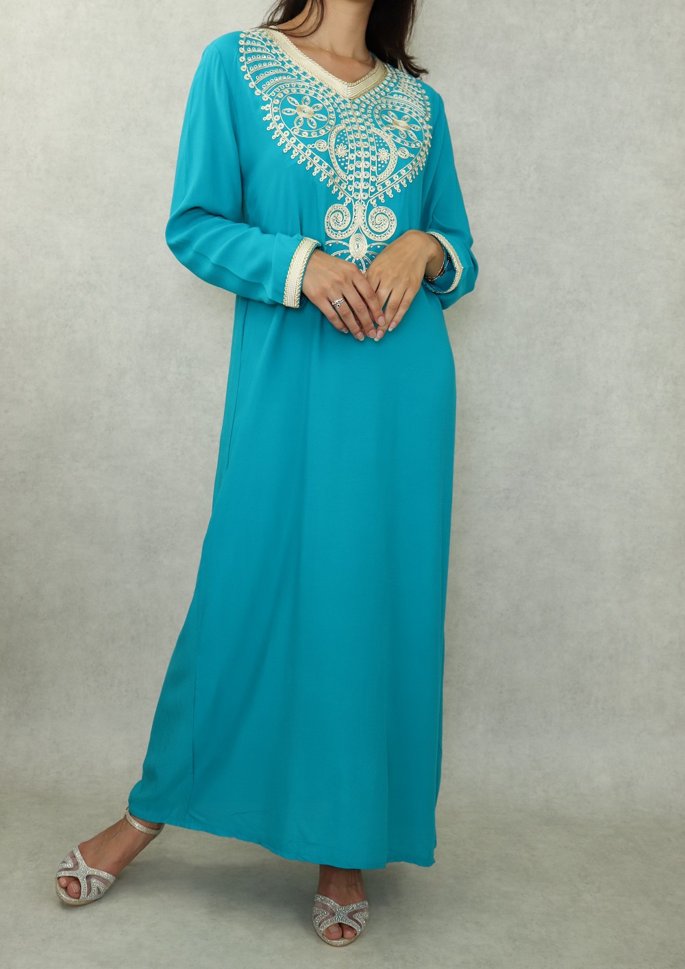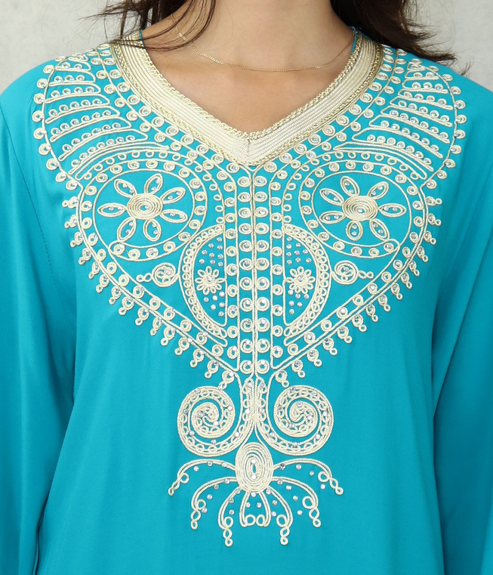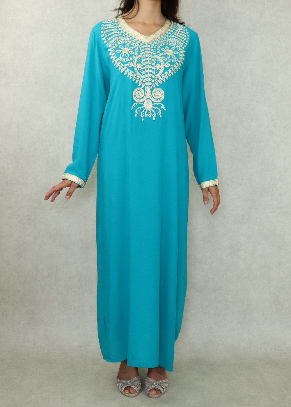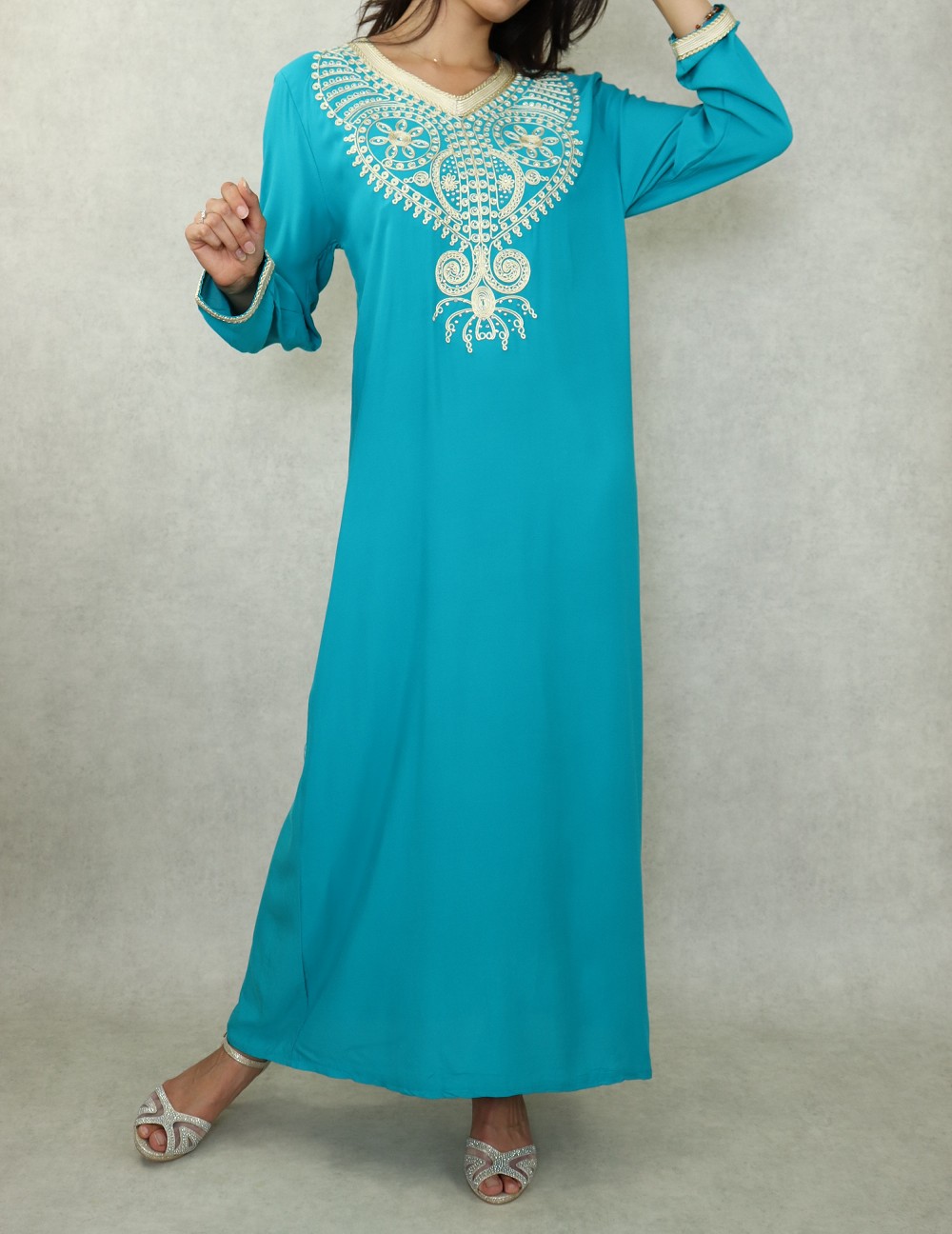 Robe orientale avec broderies et strass pour femme - Couleur bleu turquoise - REF. 33770 (29.90 €)