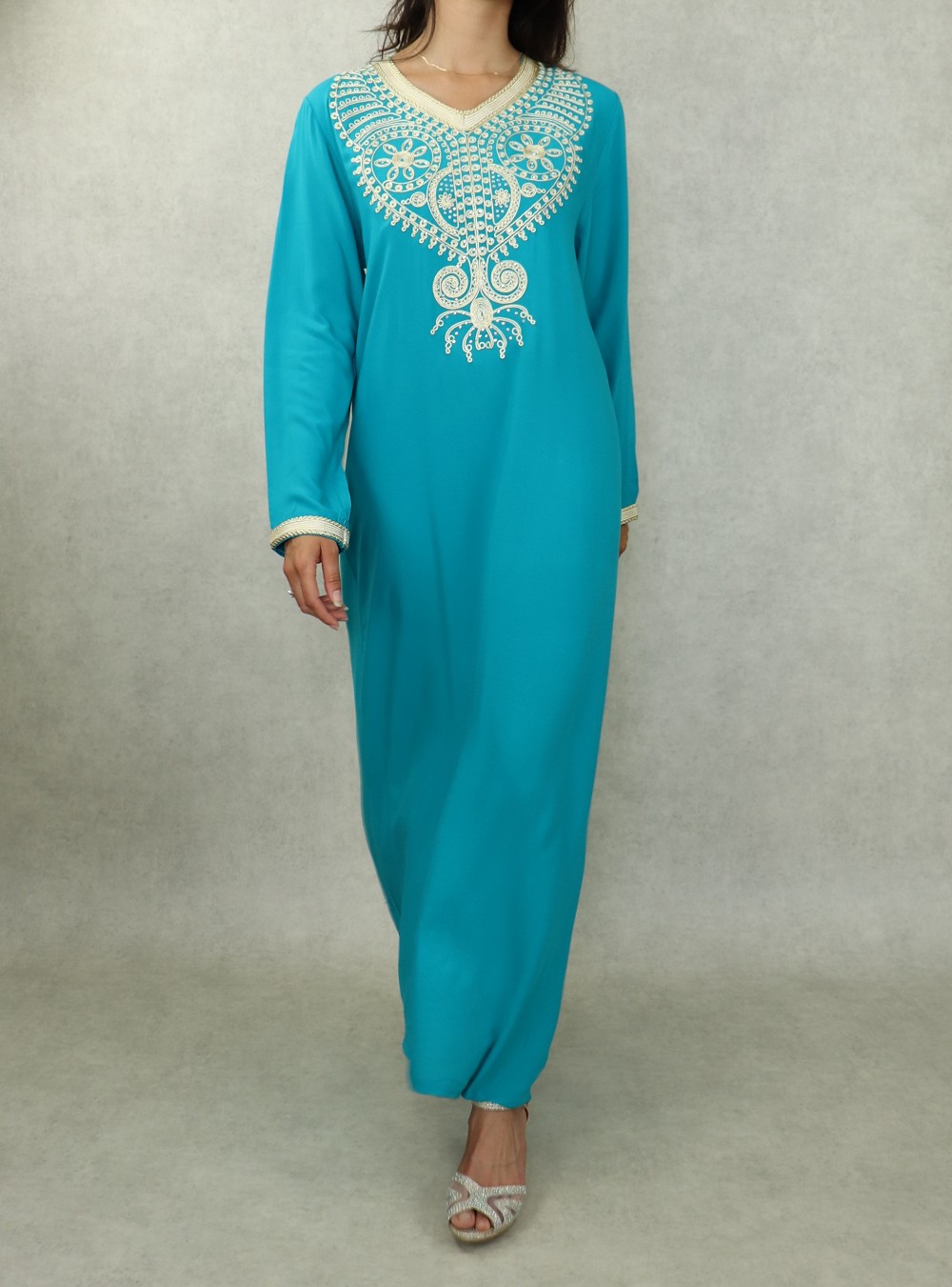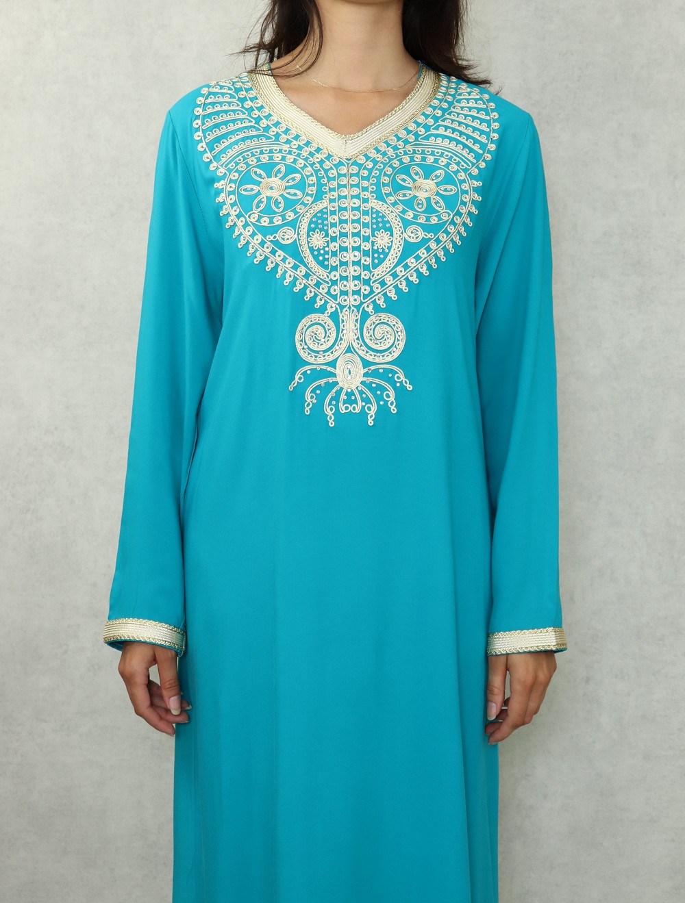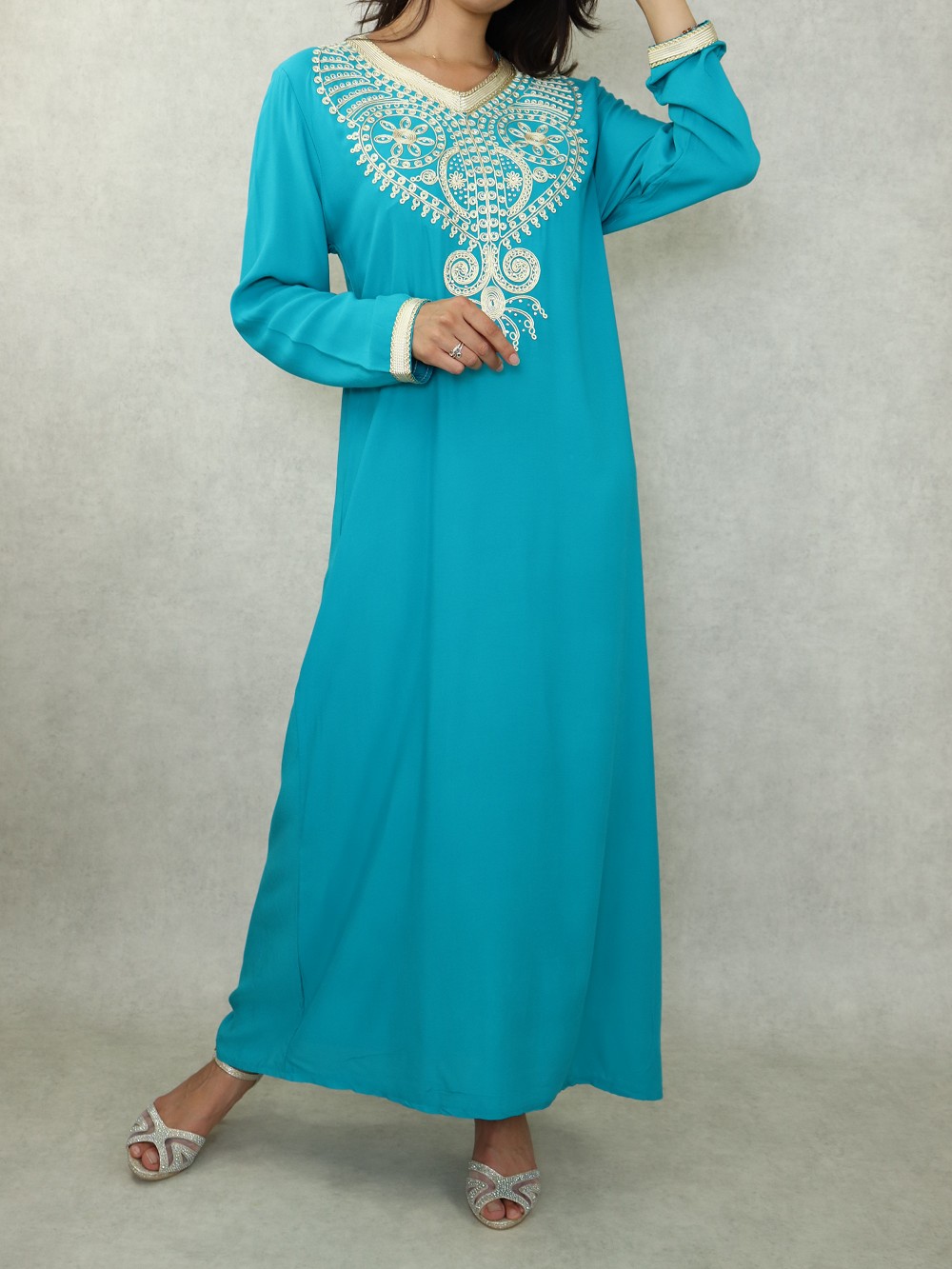 Robe orientale avec broderies et strass pour femme - Couleur bleu turquoise - REF. 33770 (29.90 €)