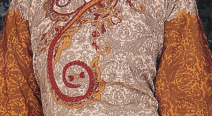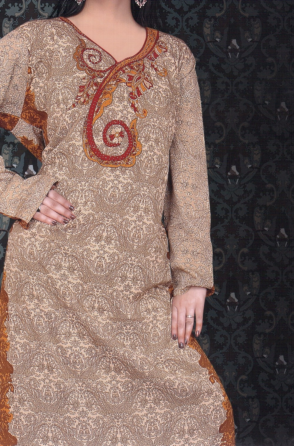 Robe orientale avec motifs. Manches longues.
