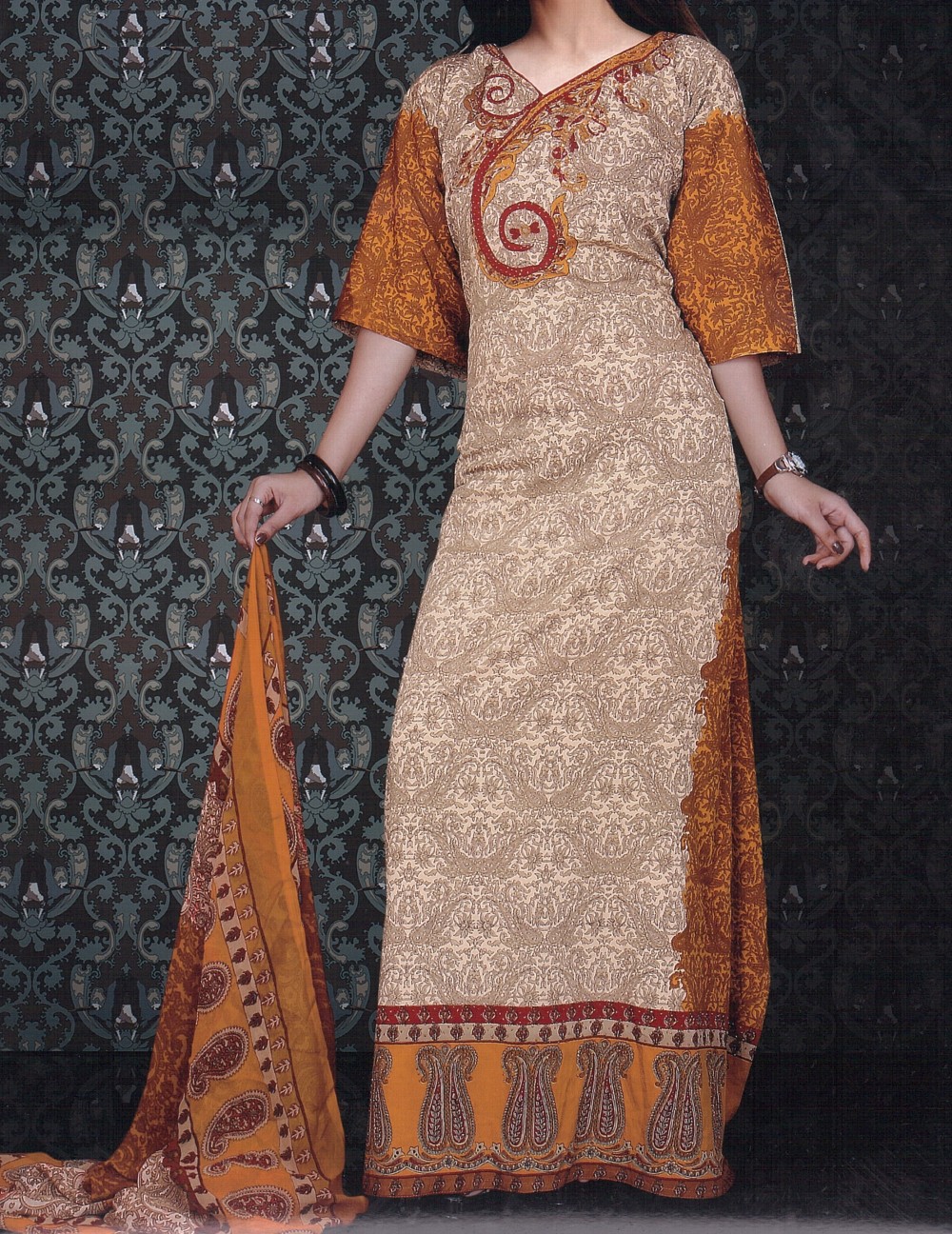 Robe orientale ample avec motifs cachemire et voile assorti - Boutique en ligne Paris - REF. 14719 (21.00 €)