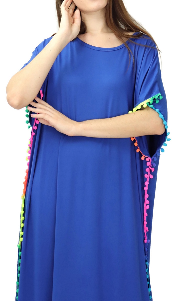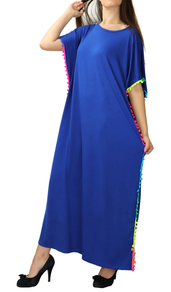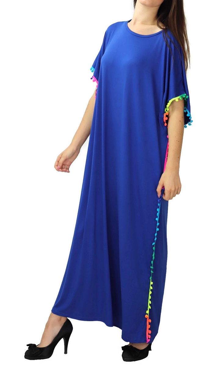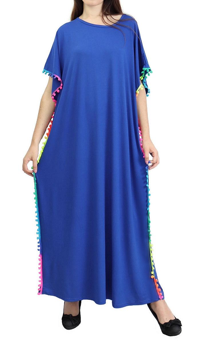 Robe orientale à pompons multicolores sur les côtés pour femme - Couleur Bleu Roi Vetement & Accessoire