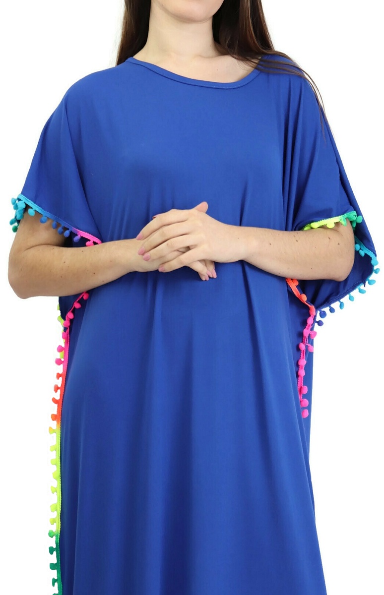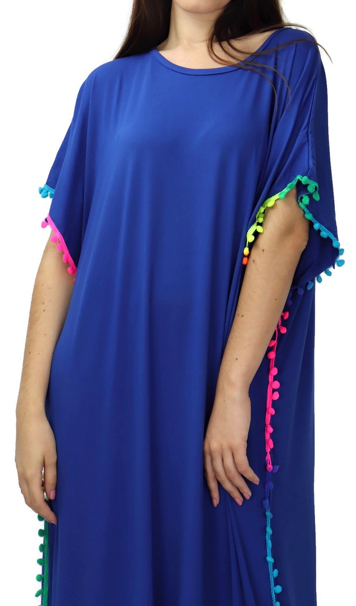 Robe orientale a pompons multicolores sur les cotes pour femme - Couleur Bleu Roi