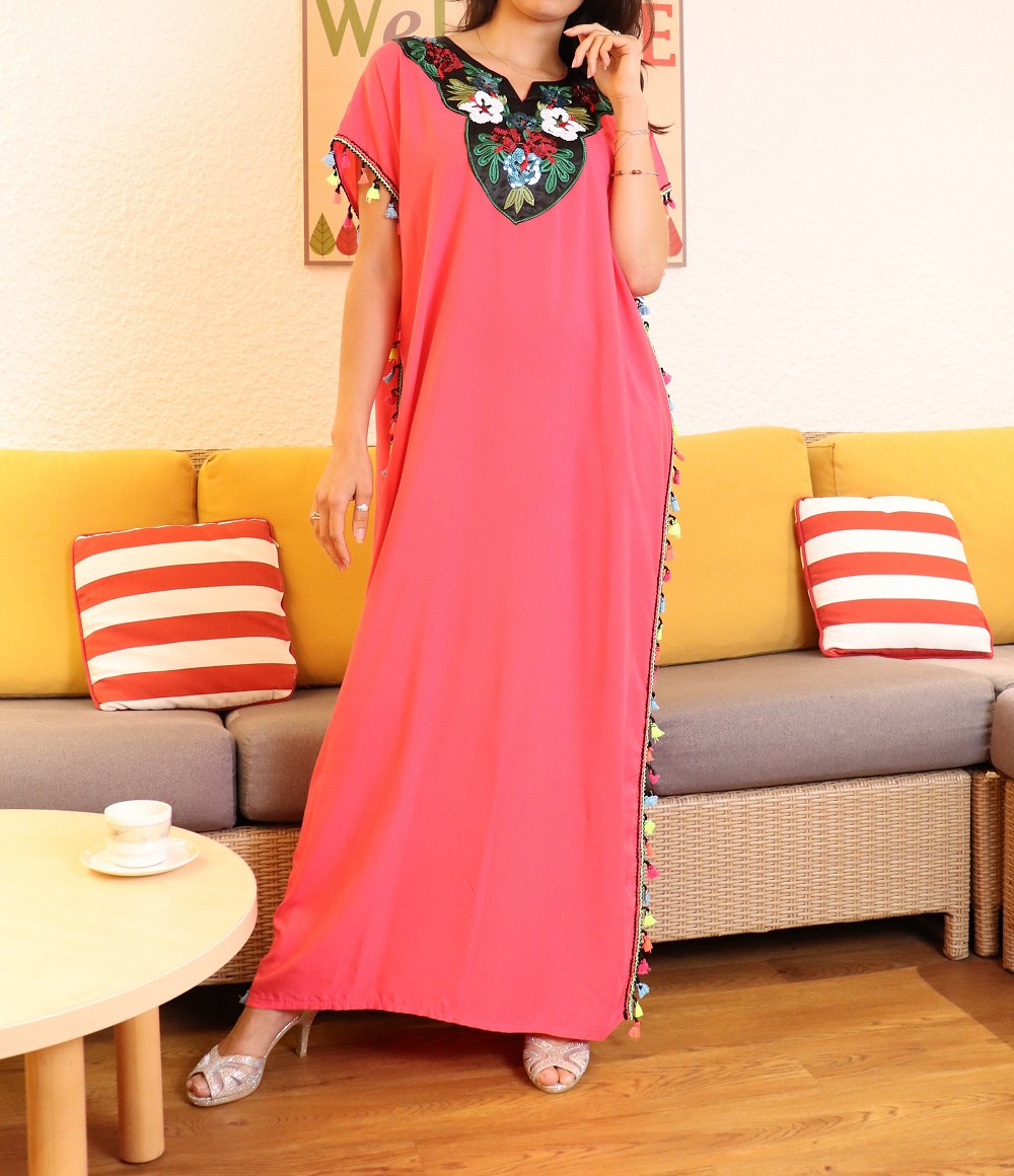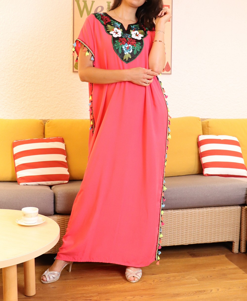Robe orientale confortable et décontractée avec broderies pour femme - Couleur magenta - REF. 37681 (19.90 €)