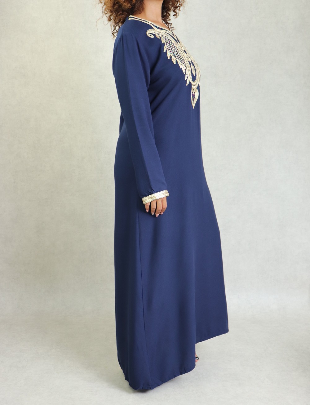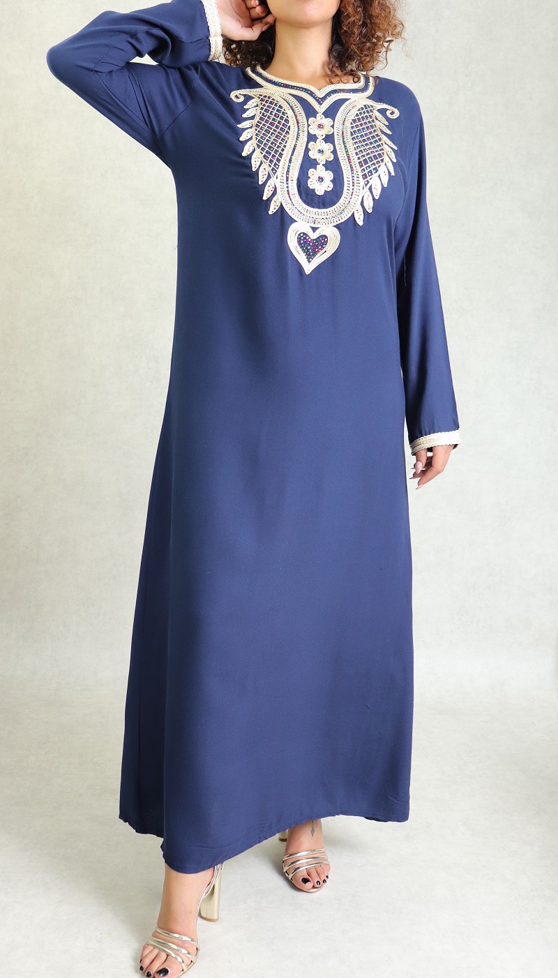 Robe orientale brodee avec strass pour femme - Couleur Bleu marine