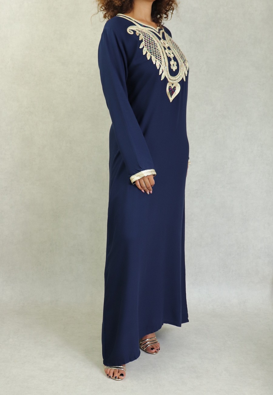 Robe orientale brodée avec strass pour femme - Couleur Bleu marine Vetement & Accessoire